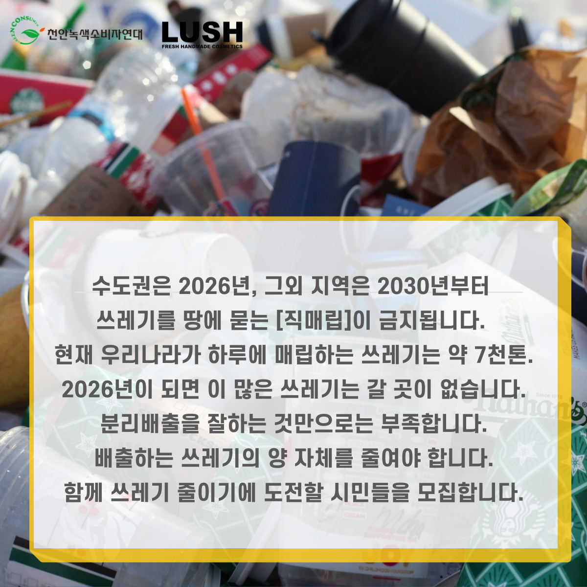 #자원순환 #쓰레기 #제로웨이스트 #러쉬코리아 #천안녹색소비자연대