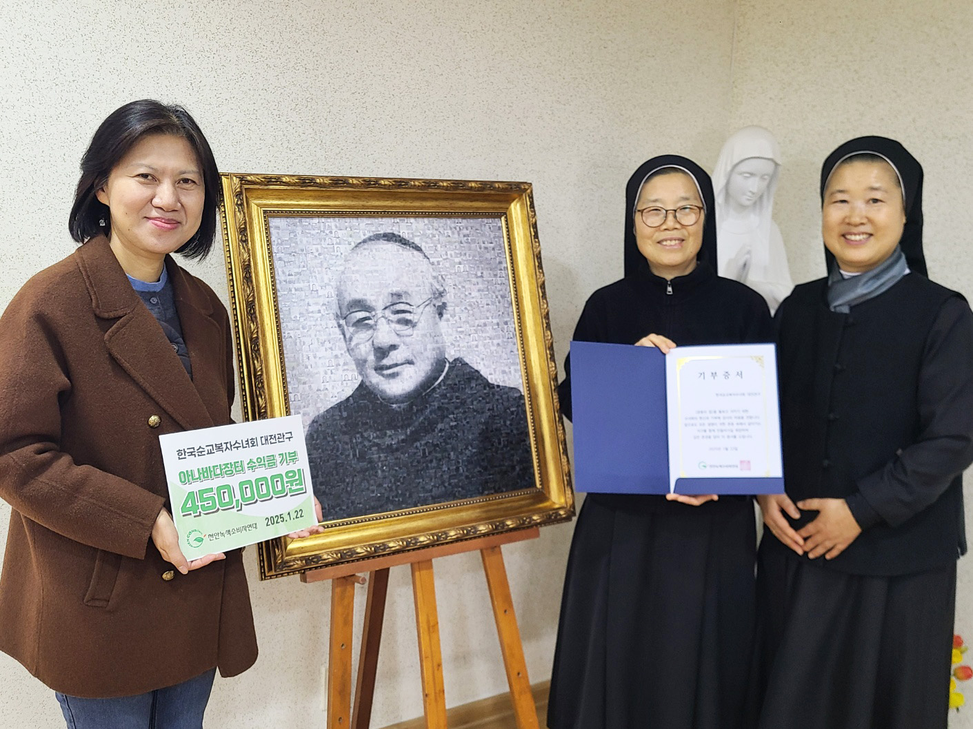 삶 속에서 공동의 집 지키기를 실천하고 있는 한국순교복자수녀회 대전관구에서 귀한 기부금을 주셨습니다. 천안 시민들에게는 복자여자중·고등학교를 운영하는 곳으로 알려져 있죠. 아나바다 장터를 개최하시고 여기서 만들어진 성금을 기부하셨어요.공동의 집을 지키기 위한 활동 기금으로 소중히 사용하겠습니다.