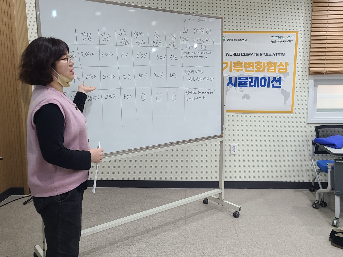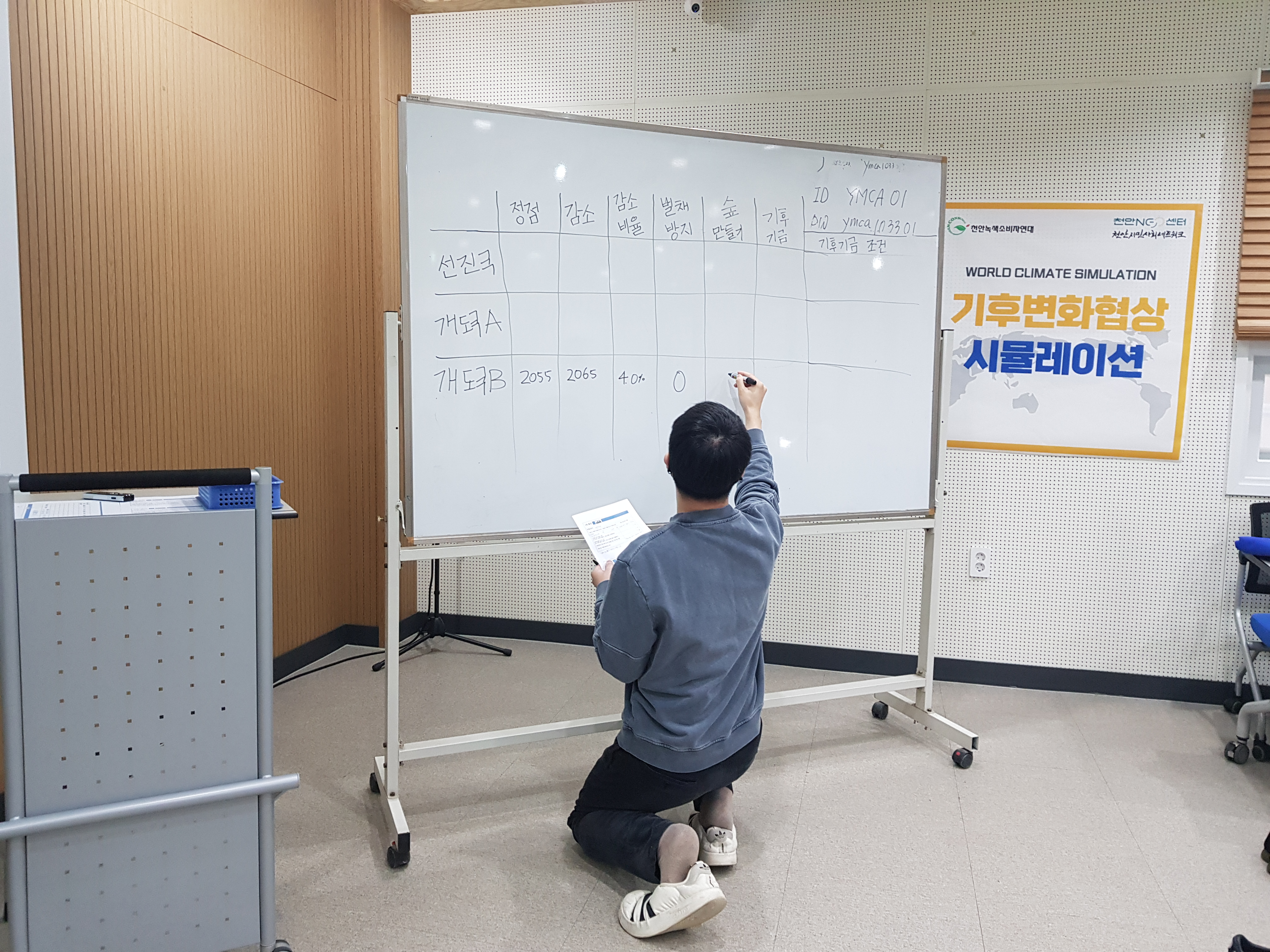올해 첫 기후변화협상 시뮬레이션 활동을 진행했습니다. 선진국, 개발도상국A, 개발도상국B 총 세 그룹으로 나뉘어 협상을 했습니다. 어느 때보다 열띤 토론과 협상이 이어졌지만 이번에도 1.5도 목표 달성에는 실패했습니다. 그 와중에 개발도상국B만이 나홀로 탄소배출감축을 매년 5%씩 하겠다고 약속했지만 다른 그룹들의 외면으로 인해 빛을 보지 못했습니다.