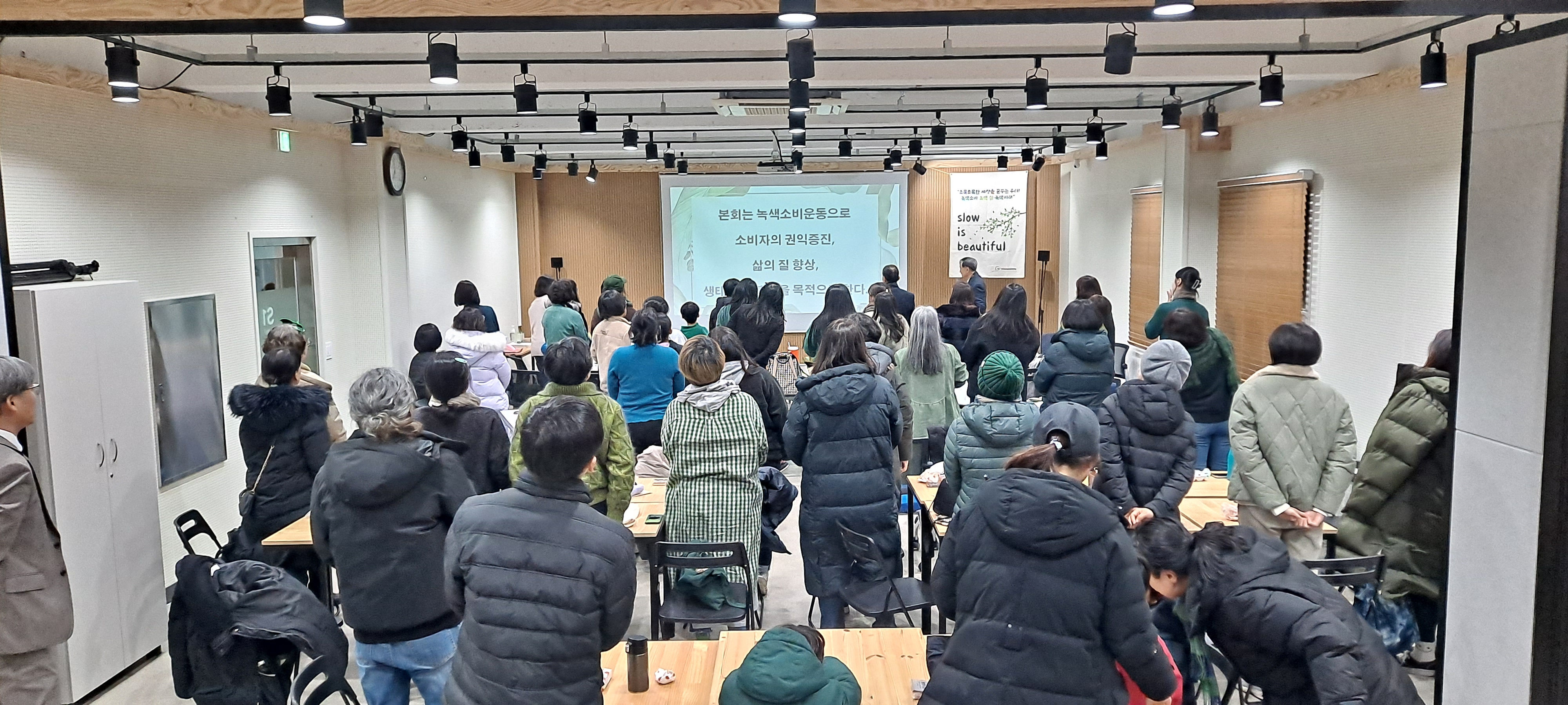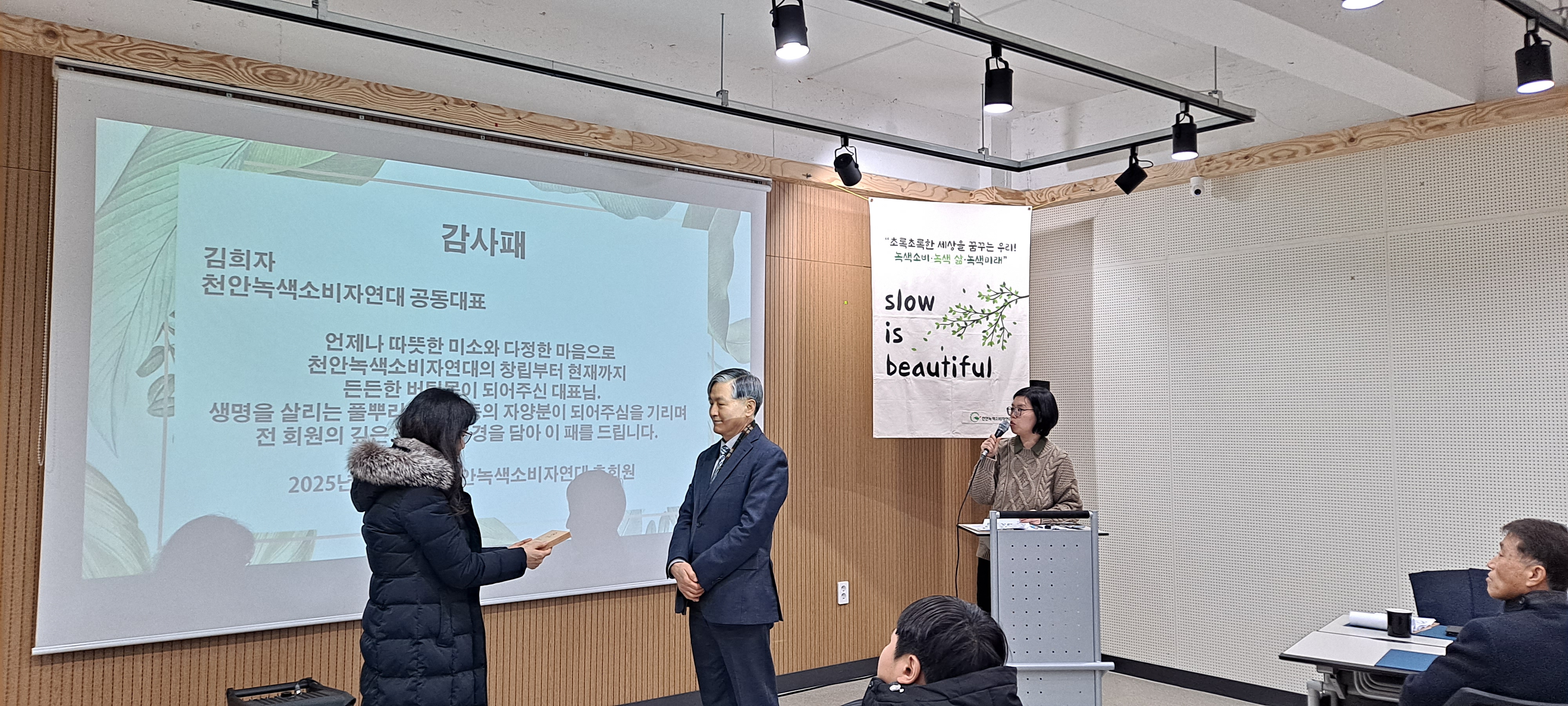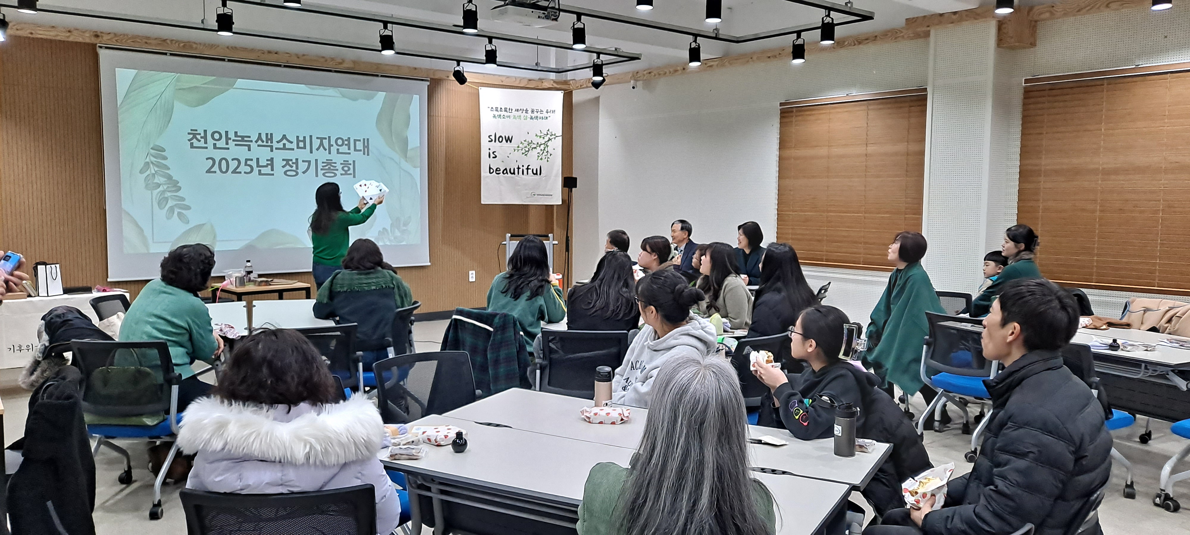 천안녹색소비자연대의 2025년 정기총회가 열렸습니다. 낮에는 눈이 내렸고 추위가 여전했음에도 많은 분들이 함께 해주셨습니다.