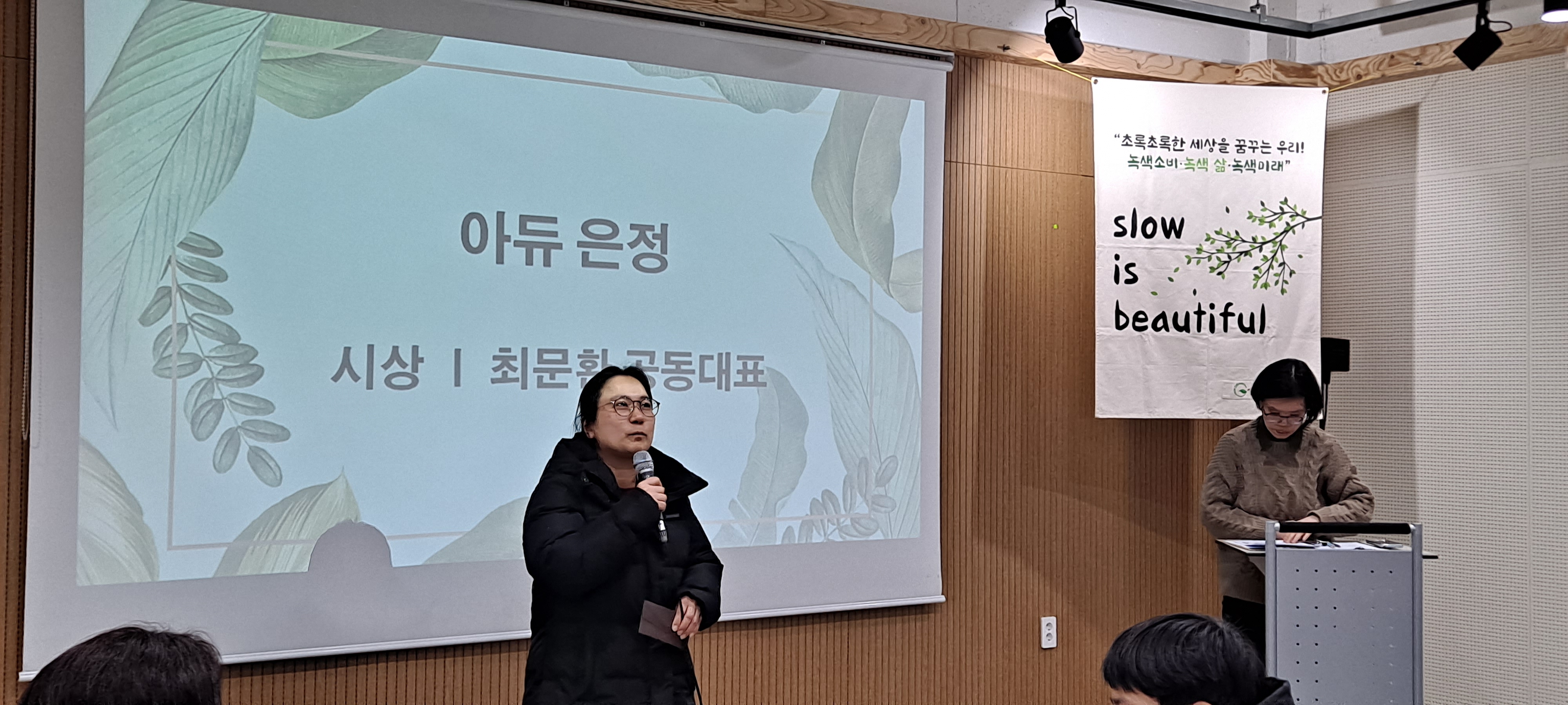 회원님들이 한자리에 모인 가운데, 2024년 녹소연의 활동을 공유하고 올해 계획도 세웠습니다. 녹소연 총회의 하이라이트인 회원상 시상도 즐겁게 진행했습니다.