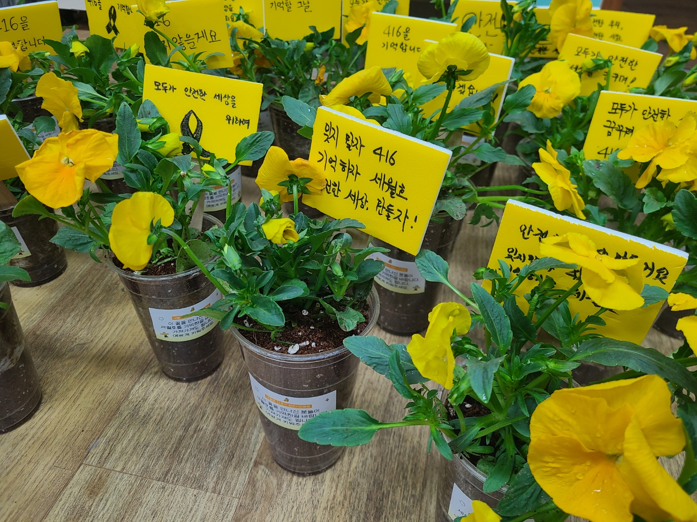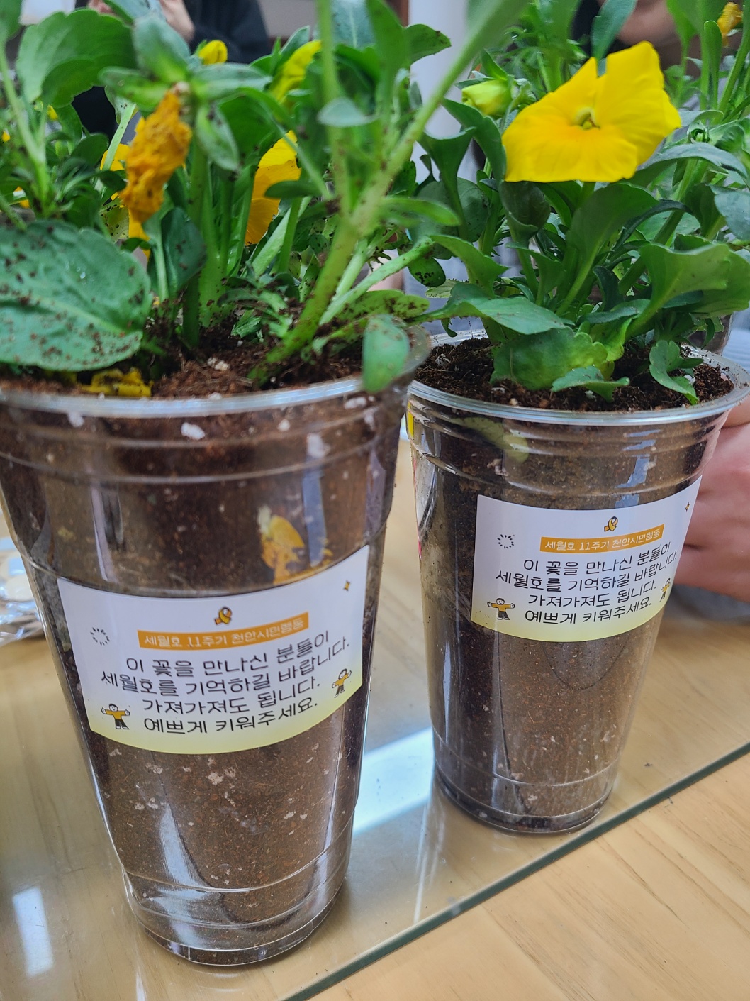 세월호 11주기를 기억하는 게릴라 가드닝 화분을 만들었습니다. 416일까지 천안시내 곳곳에 놓아질 예정입니다. 길에서 노란 약속을 만나면 세월호를 기억해주세요.