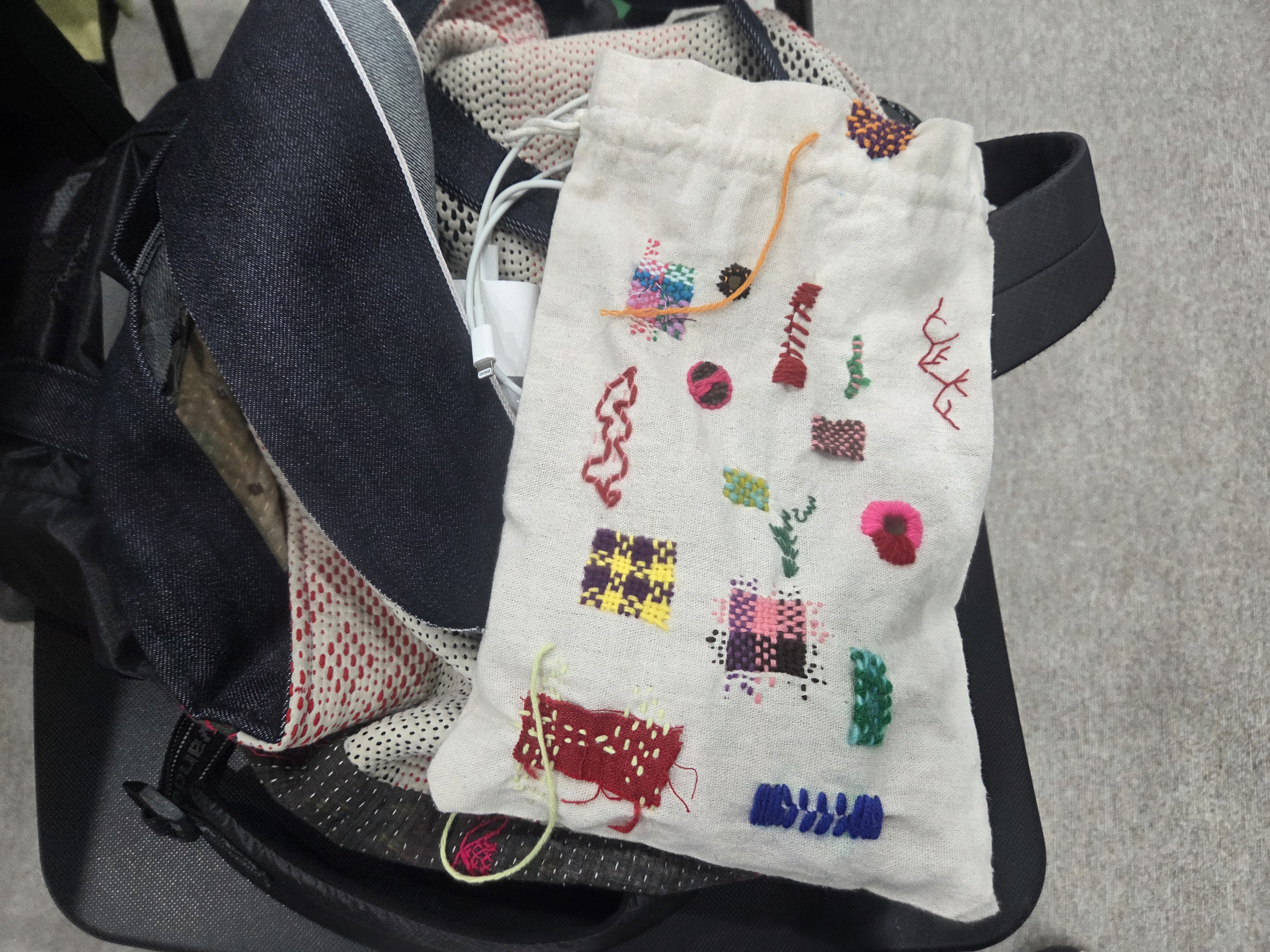 수강생 선생님의 솜씨를 엿볼 수 있는 멋진 가방도 감상하였답니다.(우리가 배울 다닝스티치도 있네요.)