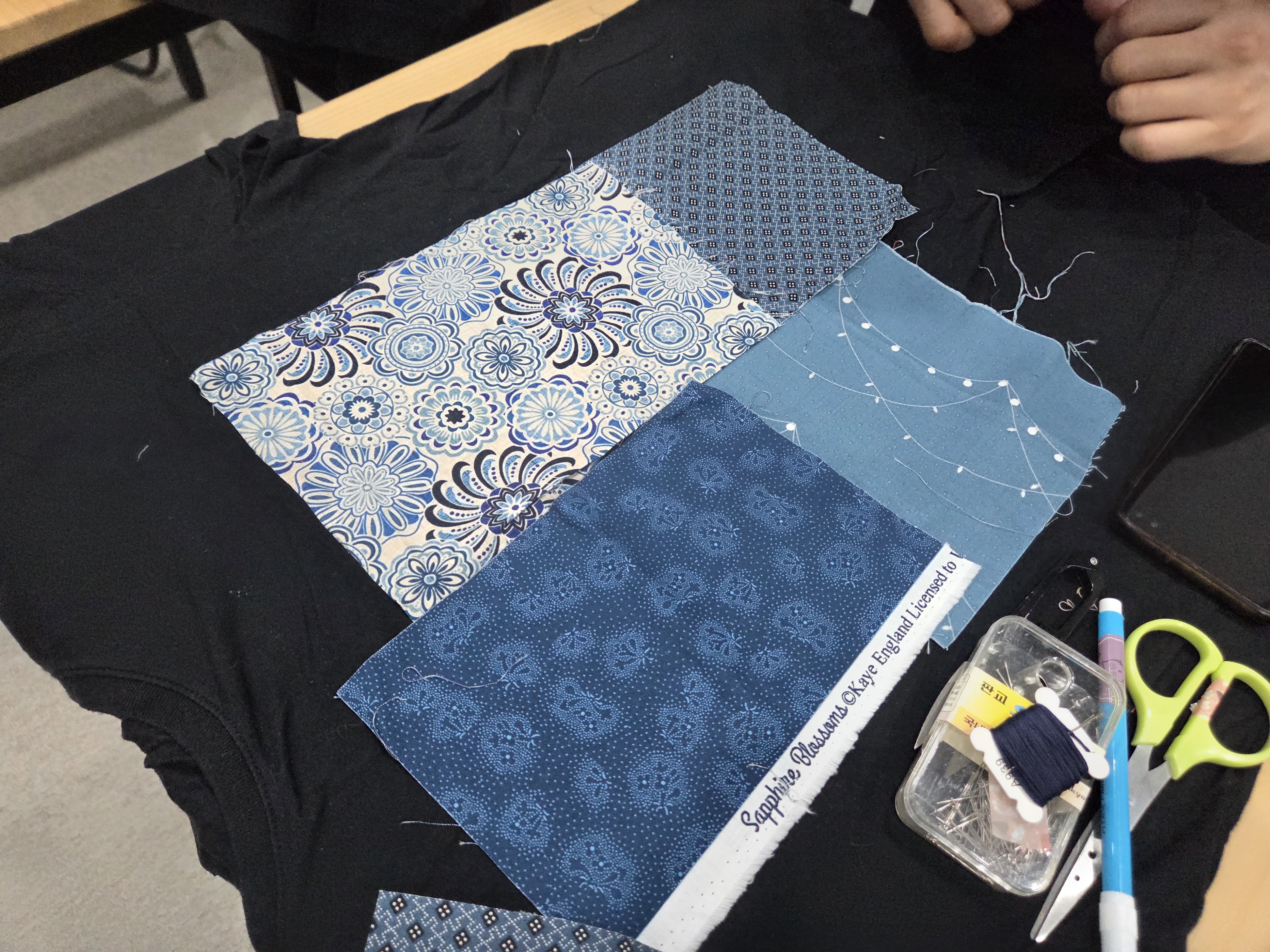 신중하게 천을 선택하고 한땀한땀 바느질하며 노닥샘의 지도하에 각자의 개성이 다긴 옷감 덧대기가 되었습니다.