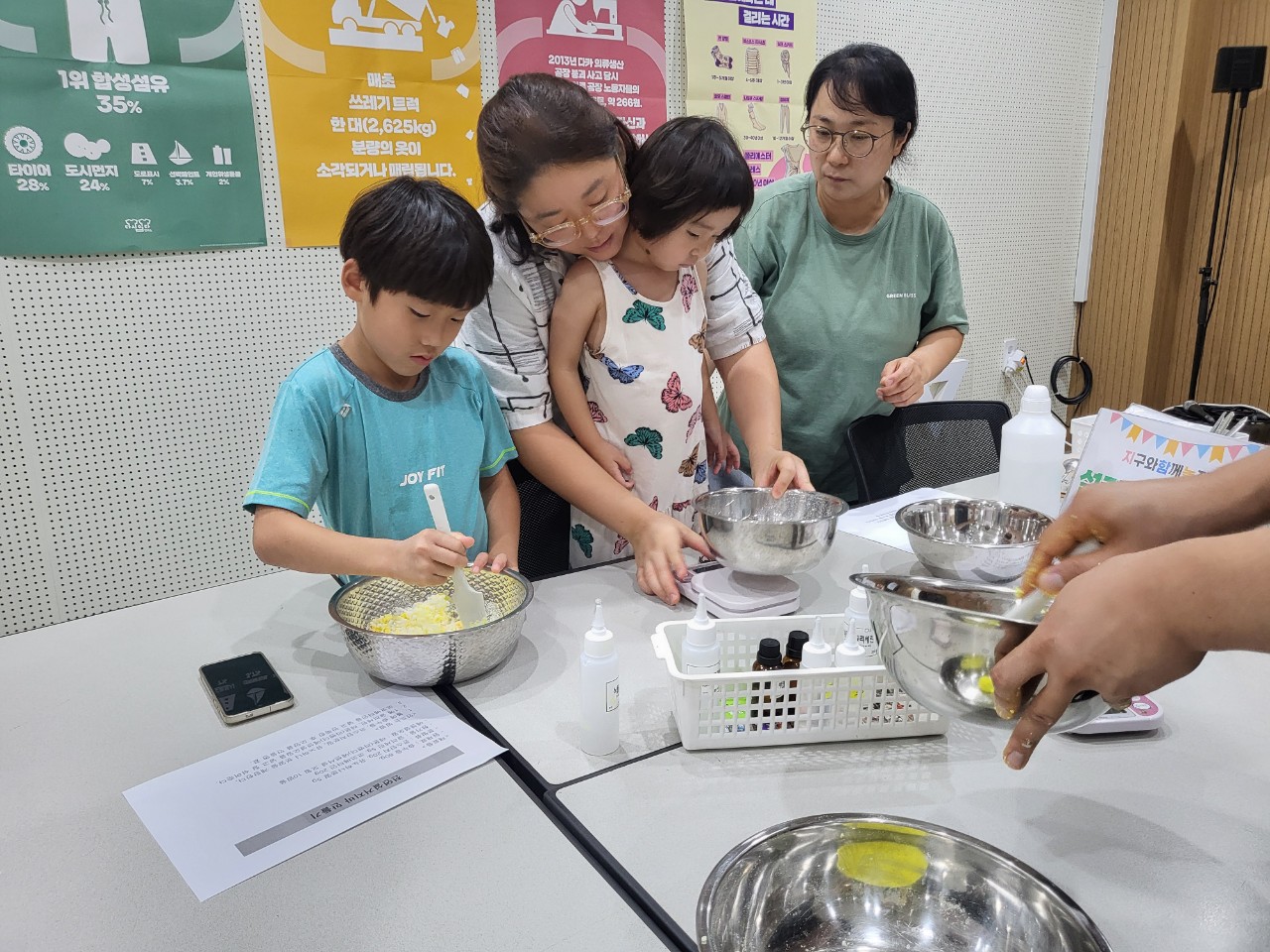포장 쓰레기 없는 설거지바 만들기 체험도 진행하였습니다.