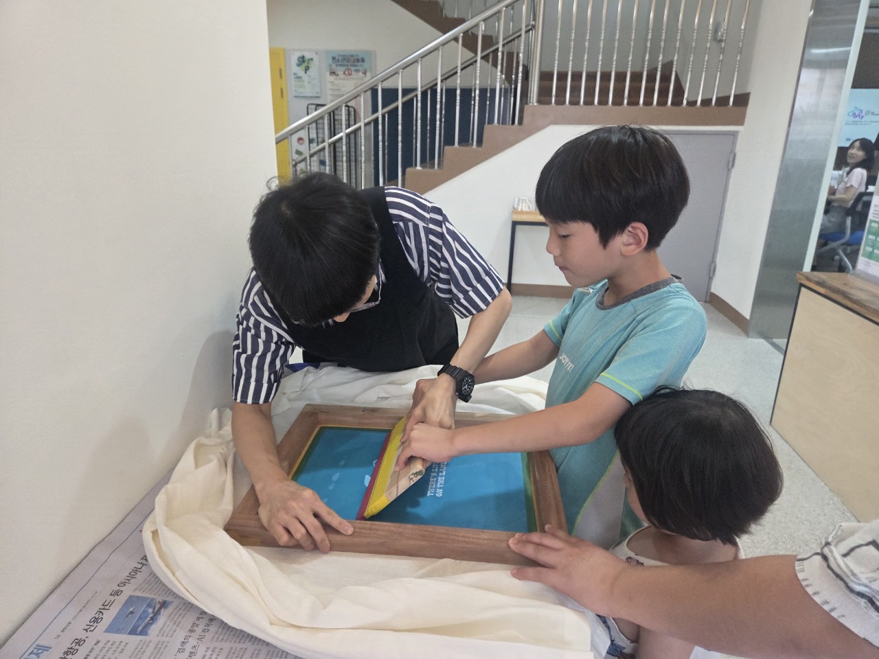 가져온 옷과 손수건을 활용해서 멋진 실크스크린 체험도 함께 즐겼습니다.