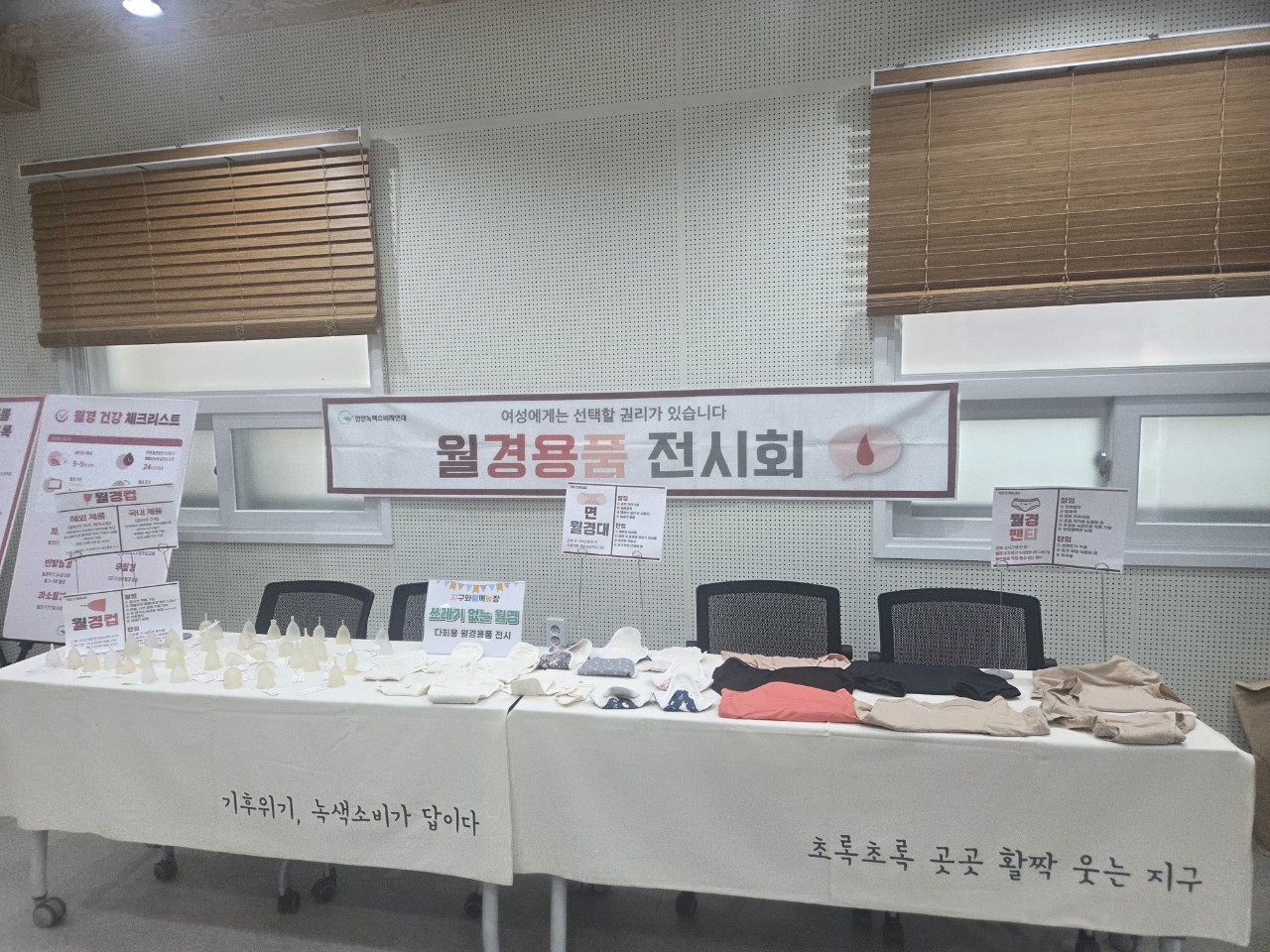 여름은 독서의 계절(?), 공유책방에서 책도 보고 다양한 종류의 월경컵 전시회도 둘러보았습니다.
