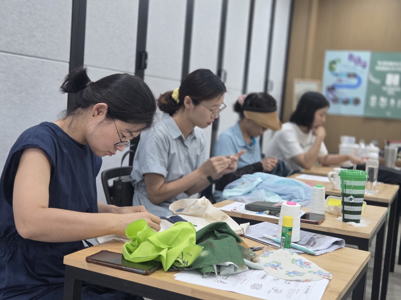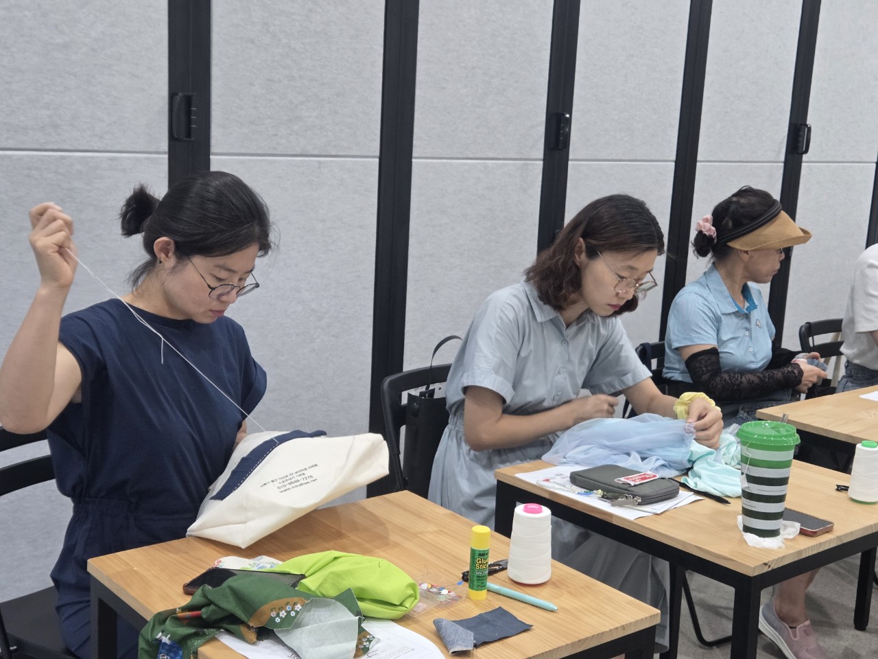 즐거운 수다를 기대했건만 바느질 교실에 집중의 침묵이 가득 가득바느질 명상(?)이 시작되었습니다. 표정들이 제법 진지하지