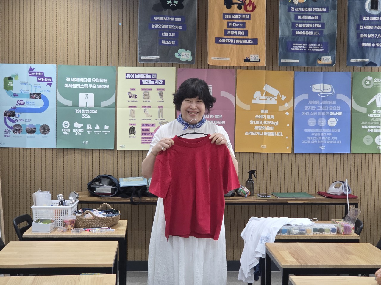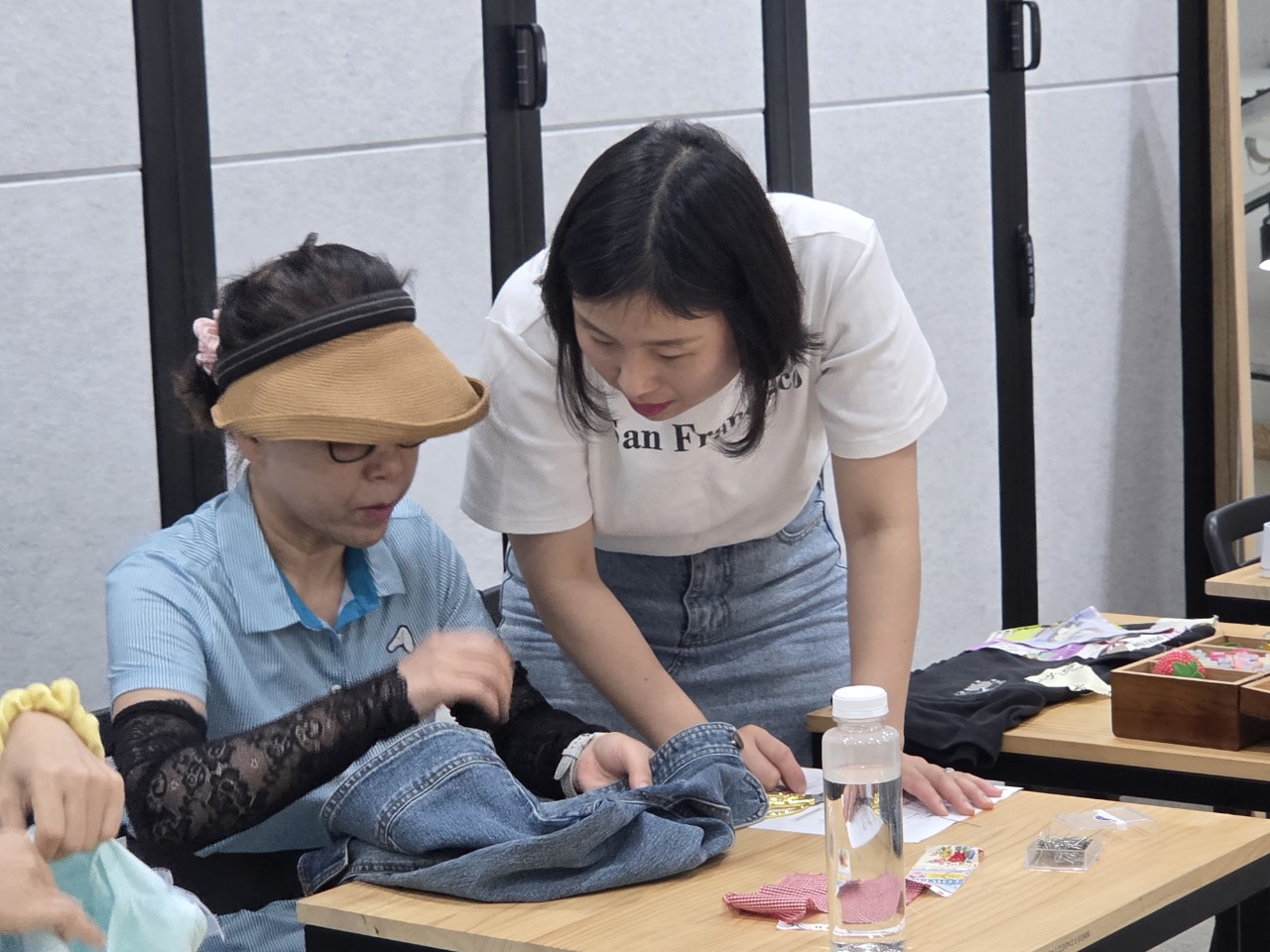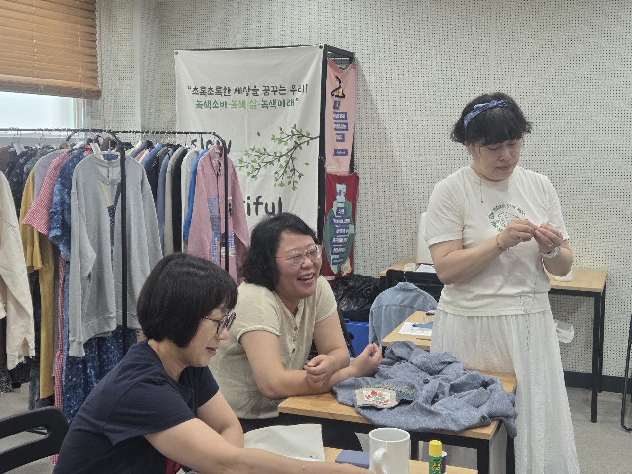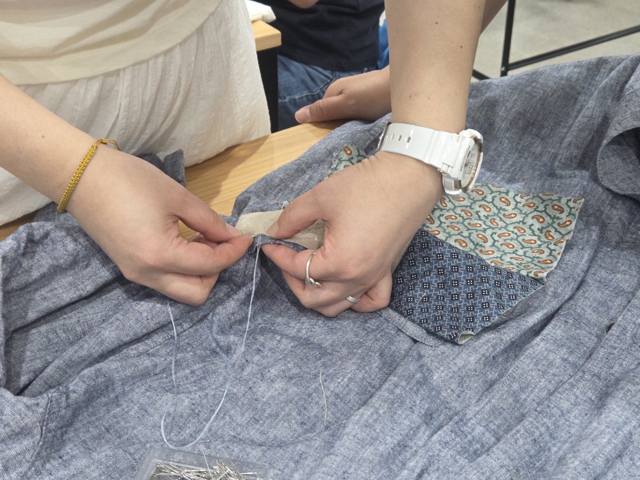 노닥선생님으로부터 간단한 바느질로 옷에 개성을 주는 스티치 기법에 대해 설명을 듣고 드디어 오늘의 바느질이 시작되었습니다.