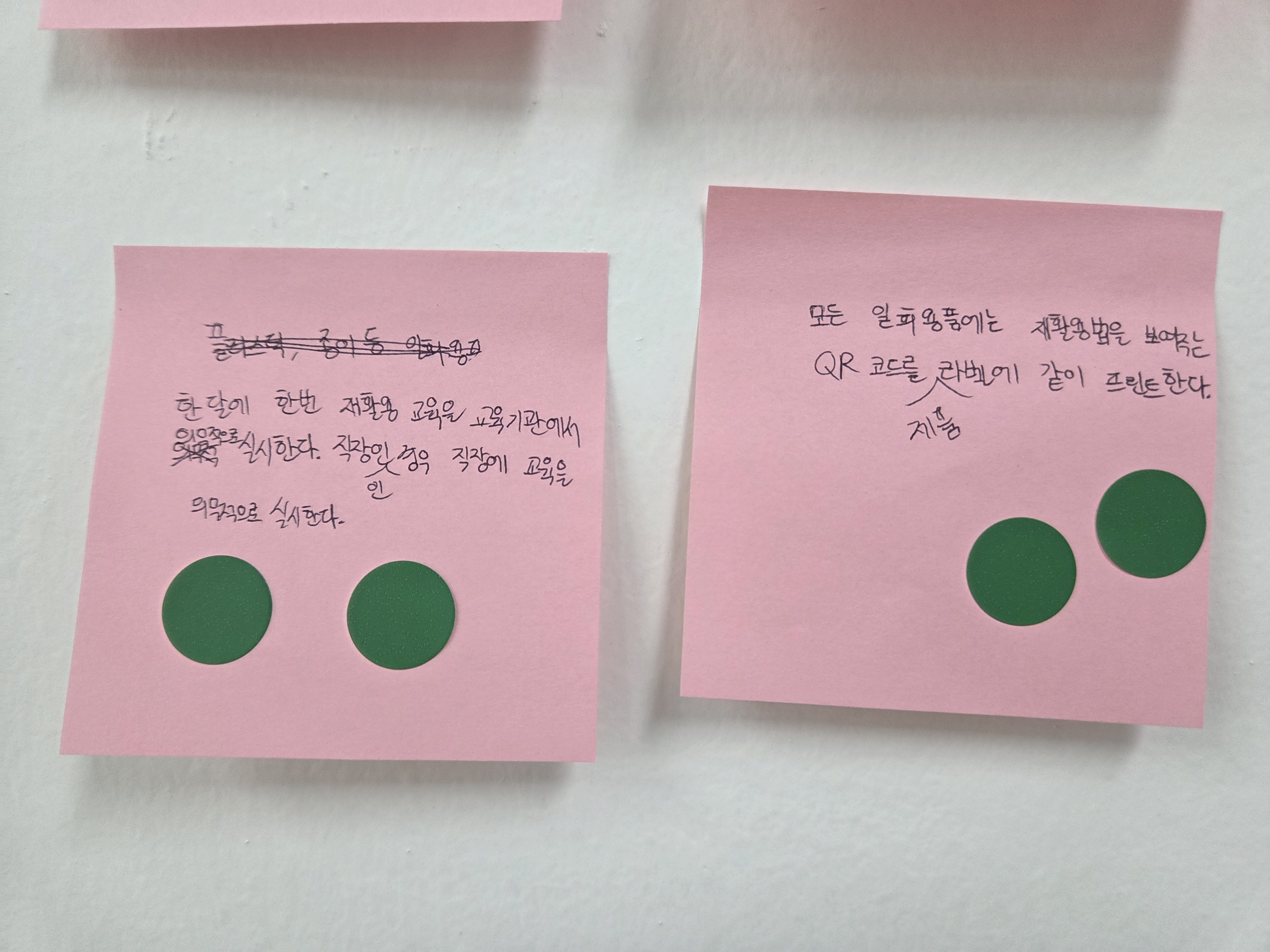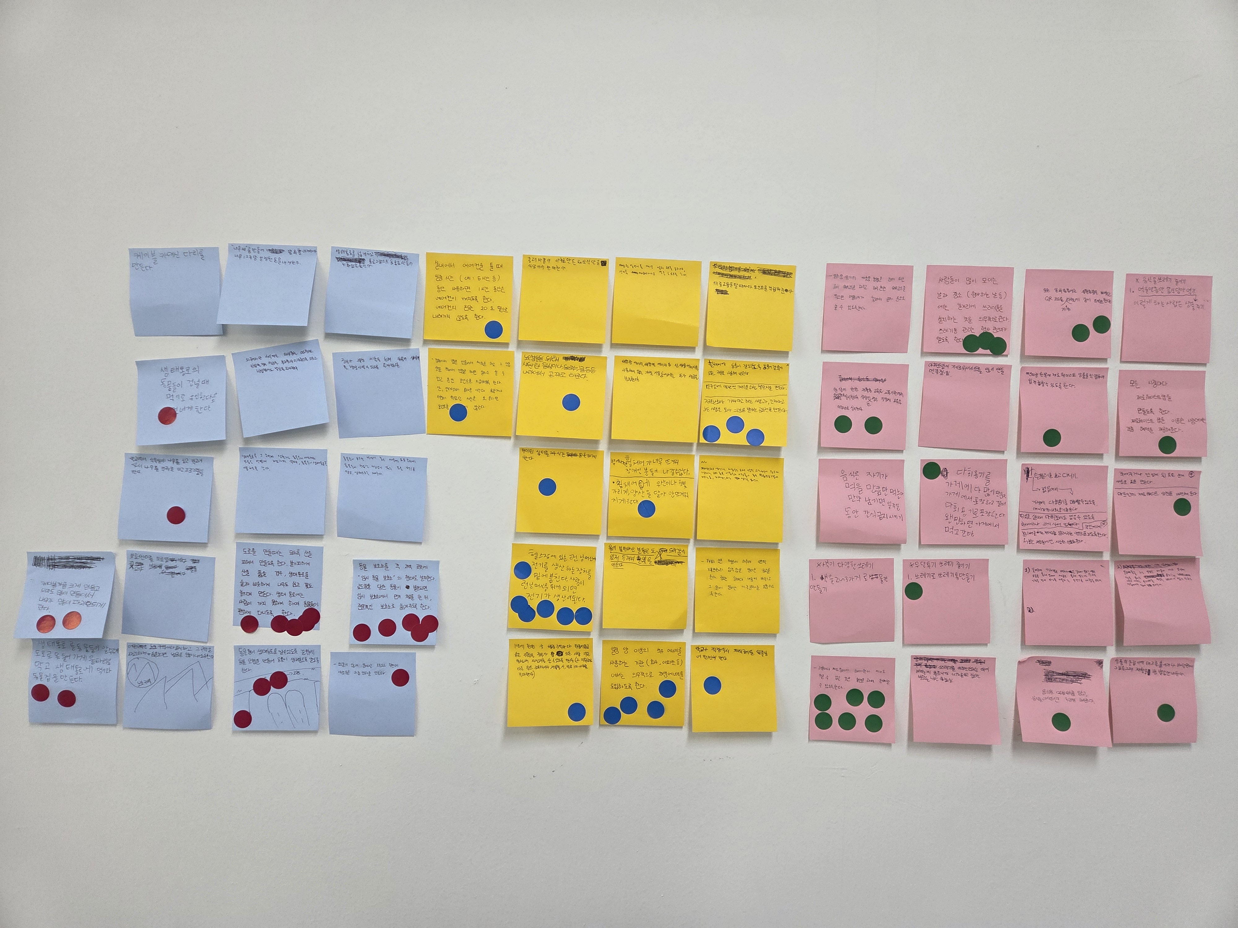 그리고 각자 필요하다고 생각하는 녹색헌법 조항에 대해 포스트잇에 작성한 후 투표를 진행하였습니다.