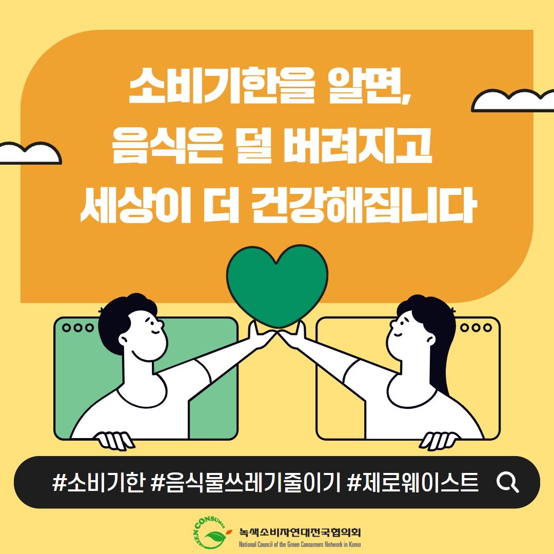 소비기한을 잘 확인해서 버려지는 식품이 없도록 우리 함께 노력하면 좋겠습니다.