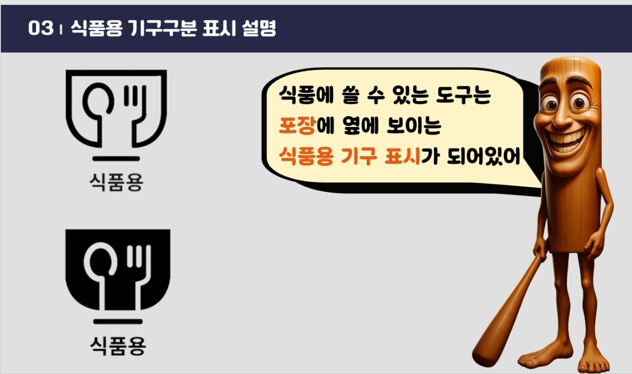 그리고 식품용에 별도로 사용되는 기구에 표시되어 있는 식품용 기구구분 표시에 대해서도 살펴보았습니다.(같은 가위라도 주방용과 일반가위는 다르게 사용해야 한다는 사실~^^)