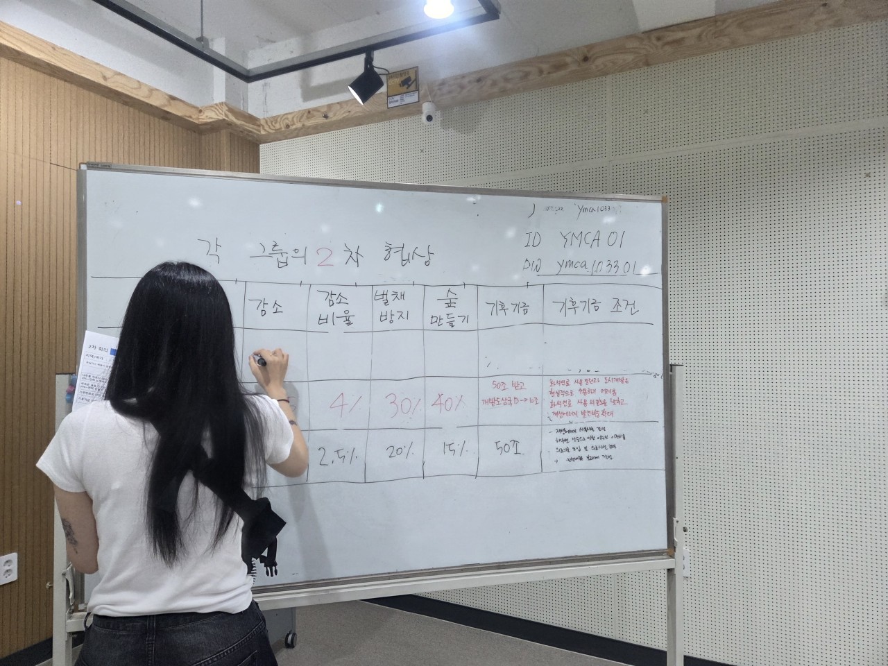 국가별로 최고 배출량 연도, 감축시작 연도, 매년 감축률, 나무를 자르지 않는 노력, 숲을 만드는 노력, 녹색 기후 기그 조성 등을 주제로 치열한 논의를 통해 1차 협상을 진행하였습니다.