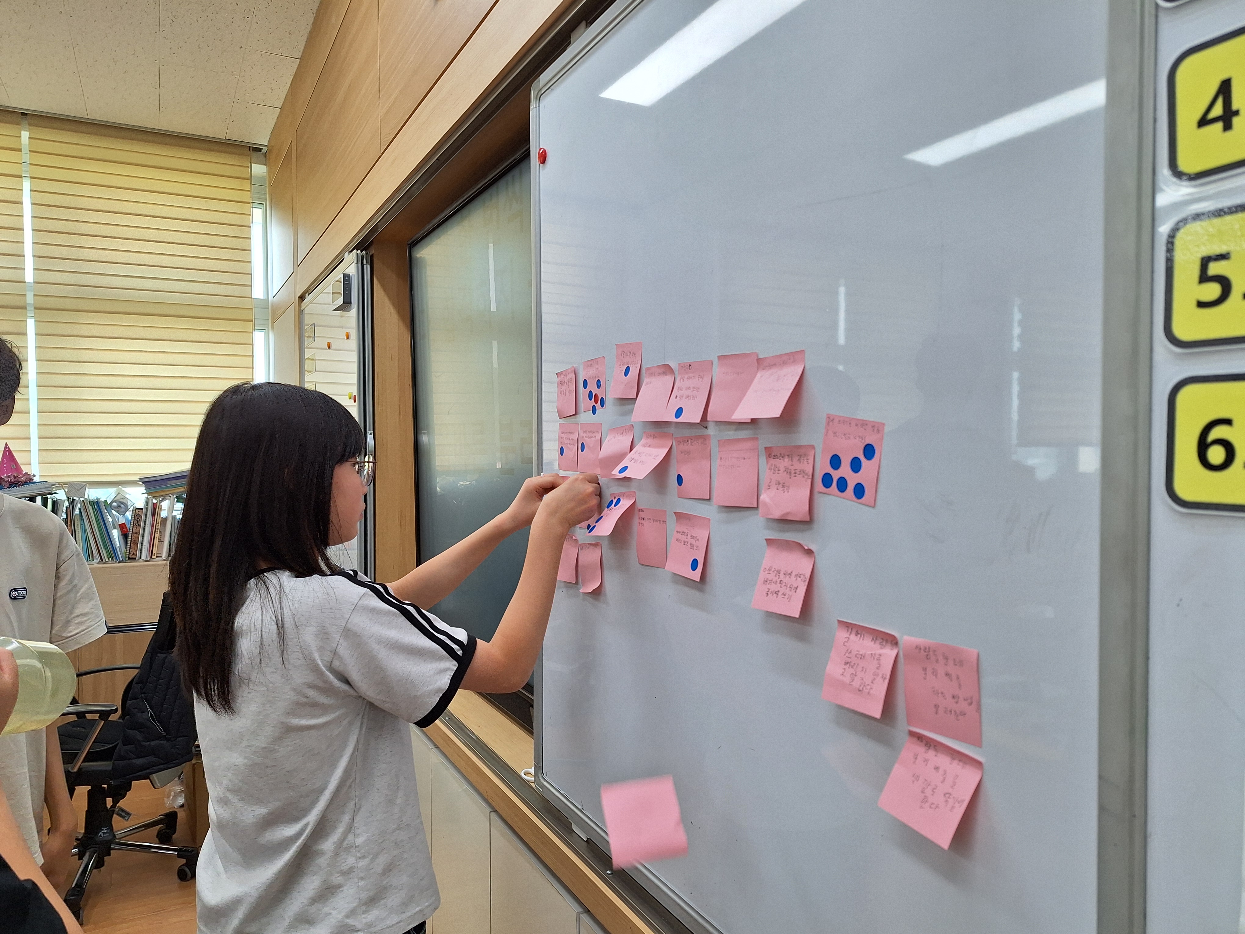 천안의 쓰레기 문제, 쓰레기 문제를 해결하기 위해 필요한 정책에 대해 친구들과 도란도란 이야기도 하고 고민도 하여 필요한 내용을 작성했습니다. 서로의 의견을 꼼꼼히 보고 투표도 진행!