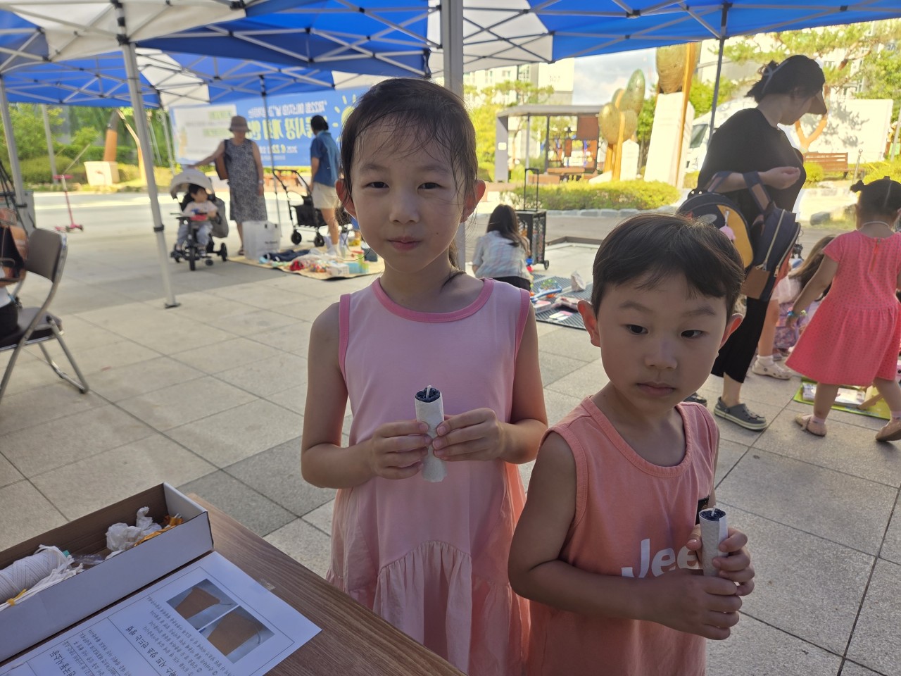 주민들에게 에너지의 날에 대해 설명하고 저녁 9시부터 5분간 소등에 참여할 '비즈왁스시트 양초' 만들기 체험을 진행하였습니다.