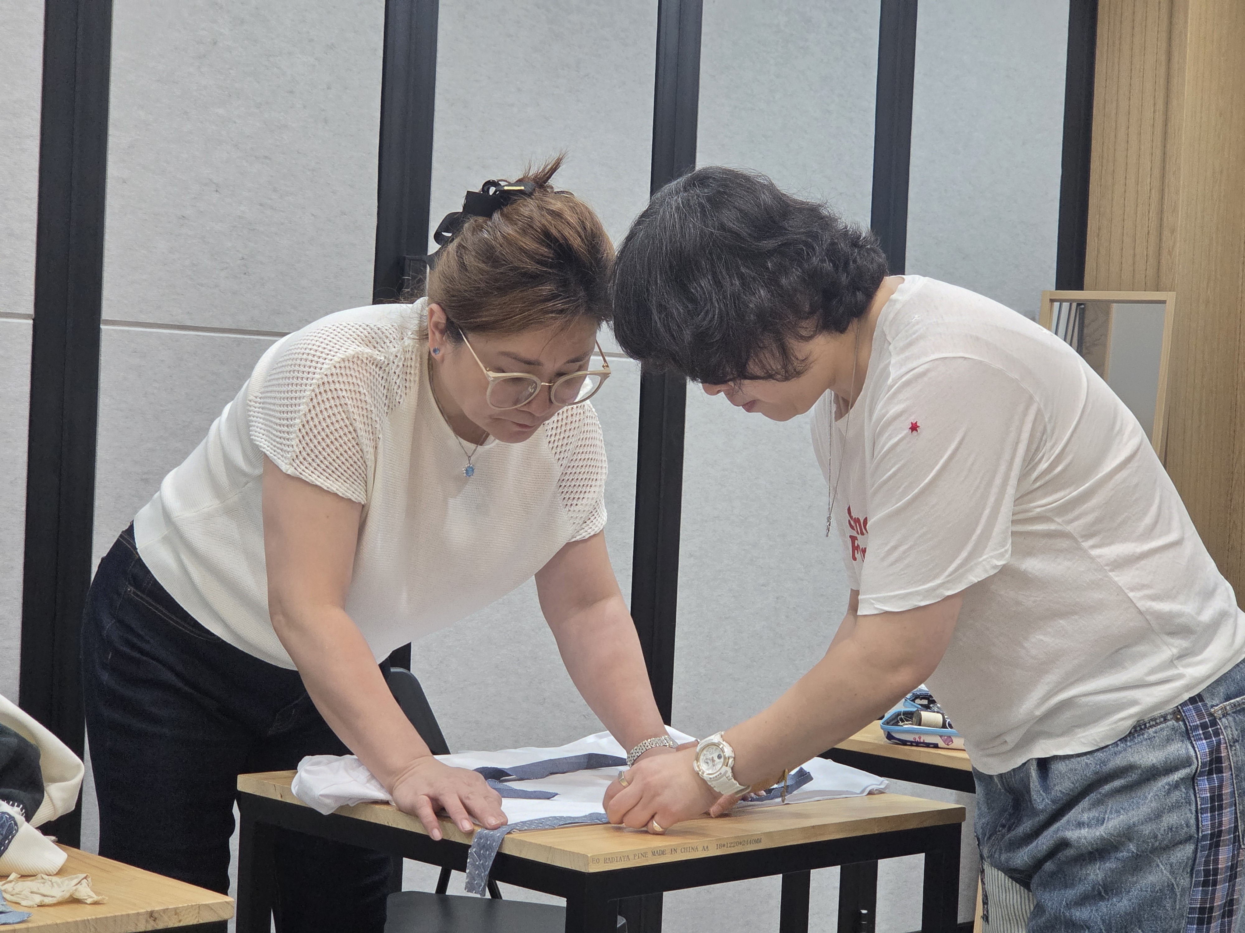 공예수선교실 제6강 '소매수선', 오늘은 조각 원단으로 낡은 소매를 수선하는 것과 청바지 등 바지단 줄이기를 진행하였습니다.