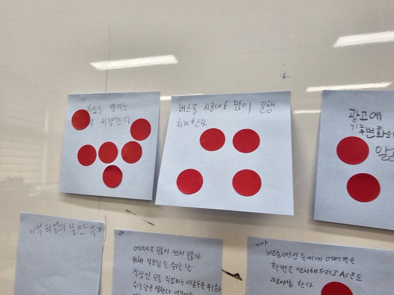 먼저 1회차에 작성한 기후위기 관련 제안 조항에 대한 투표를 진행하였습니다.