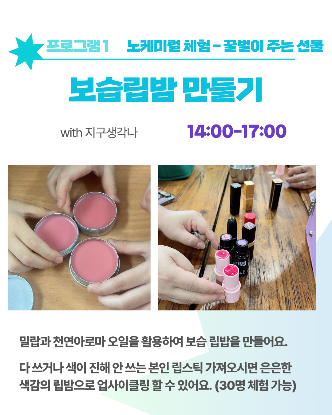 환경도 생각하면서 재미있게 즐길 수 있는 다양한 체험들이 마련되어 있으니 시간 꼭 비워주세요.