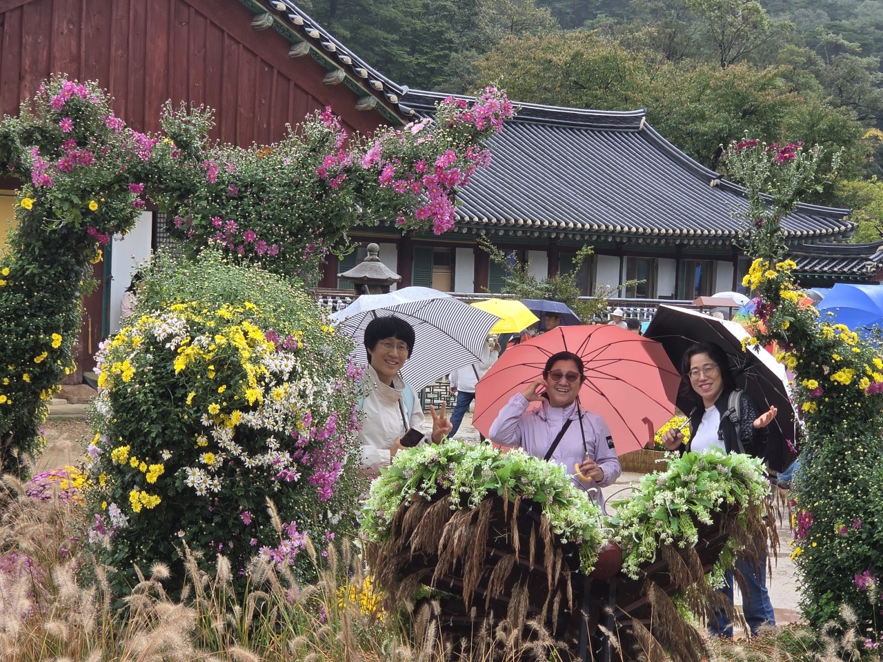 법주사는 국화꽃 축제가 열려서인지 사람들이 인산인해를 이루었지만 다양하게 장식한 국화꽃 사이사이에서 예쁘게 포즈도 한컷.