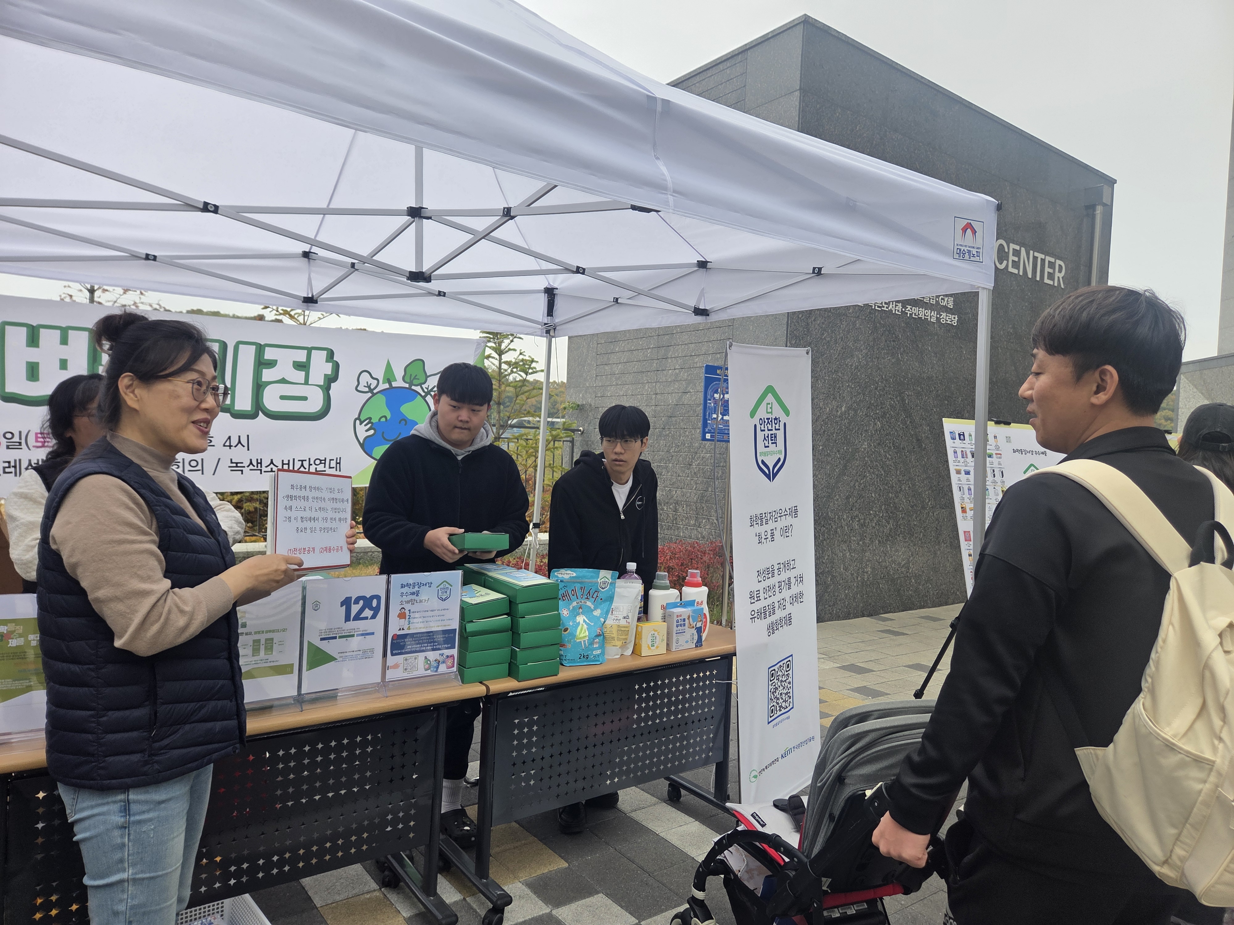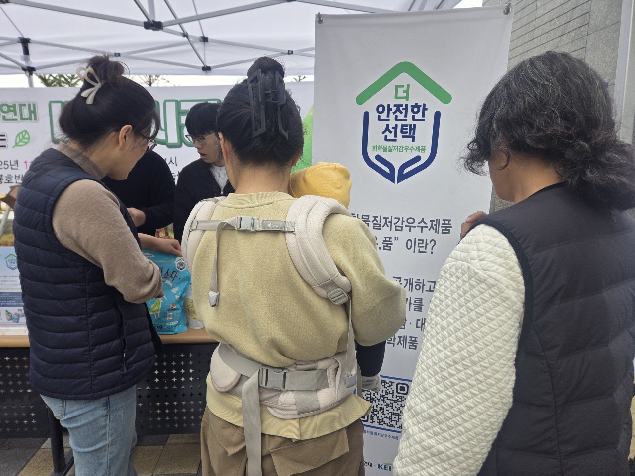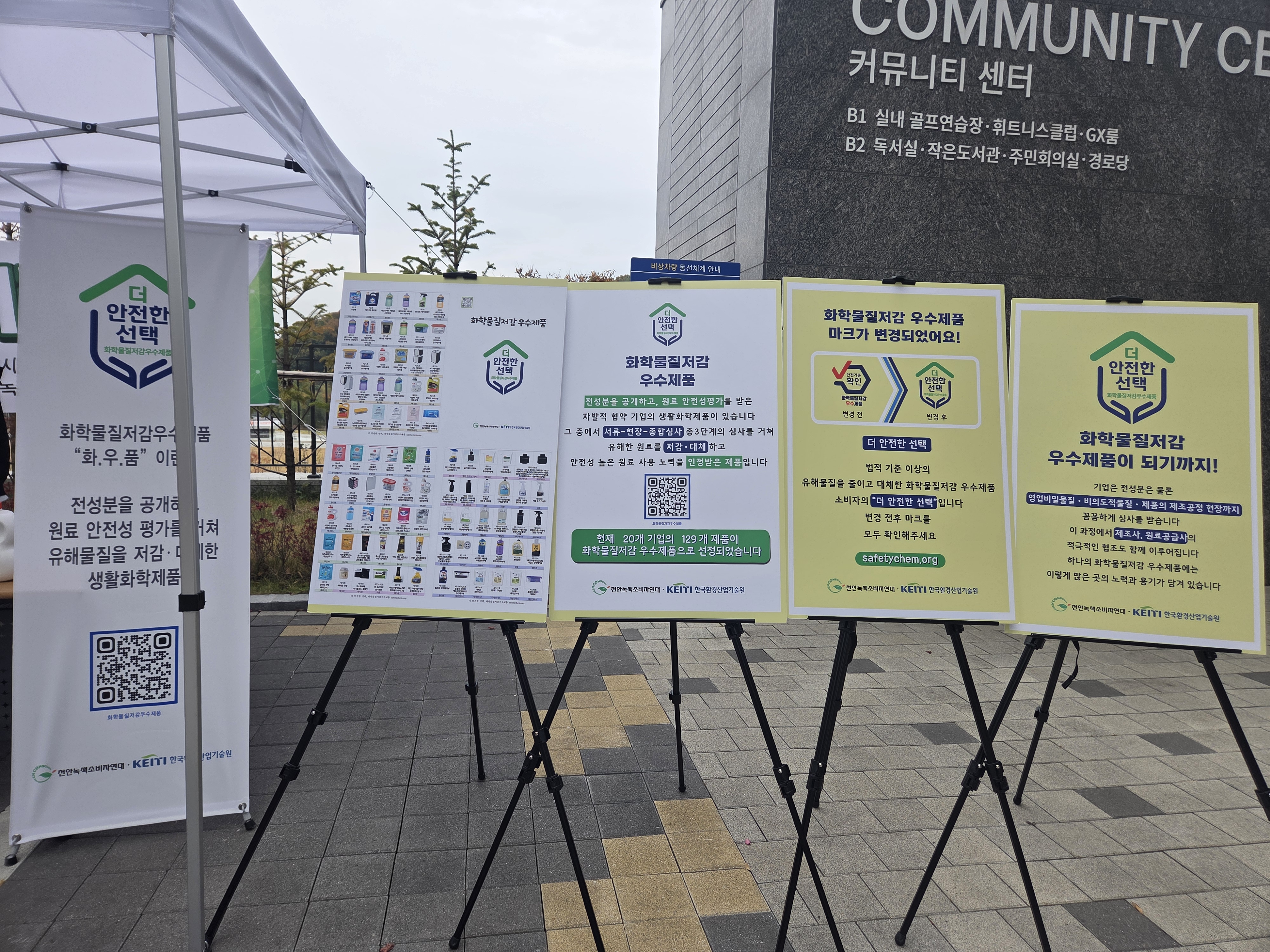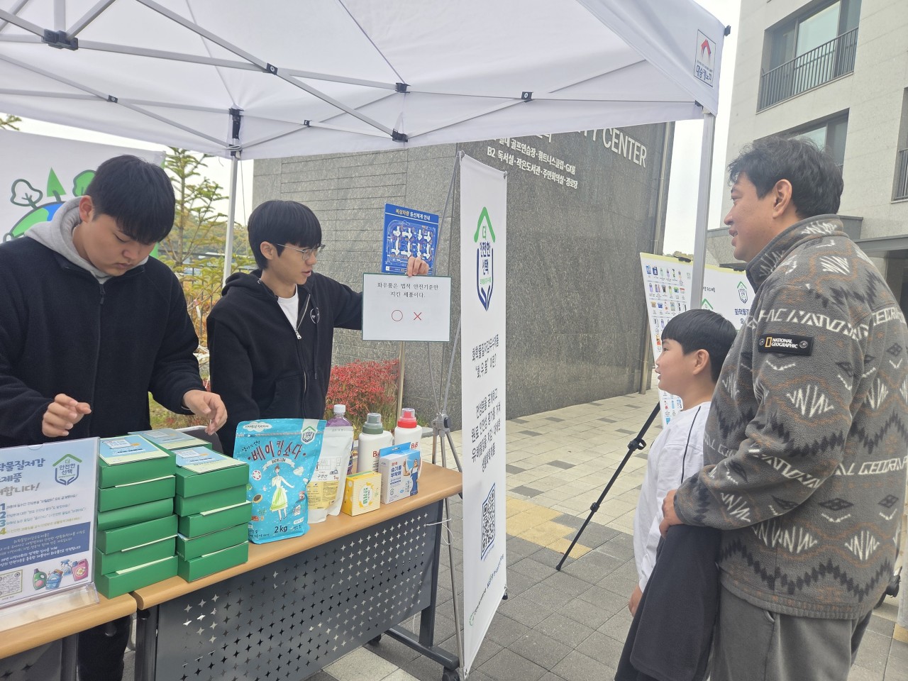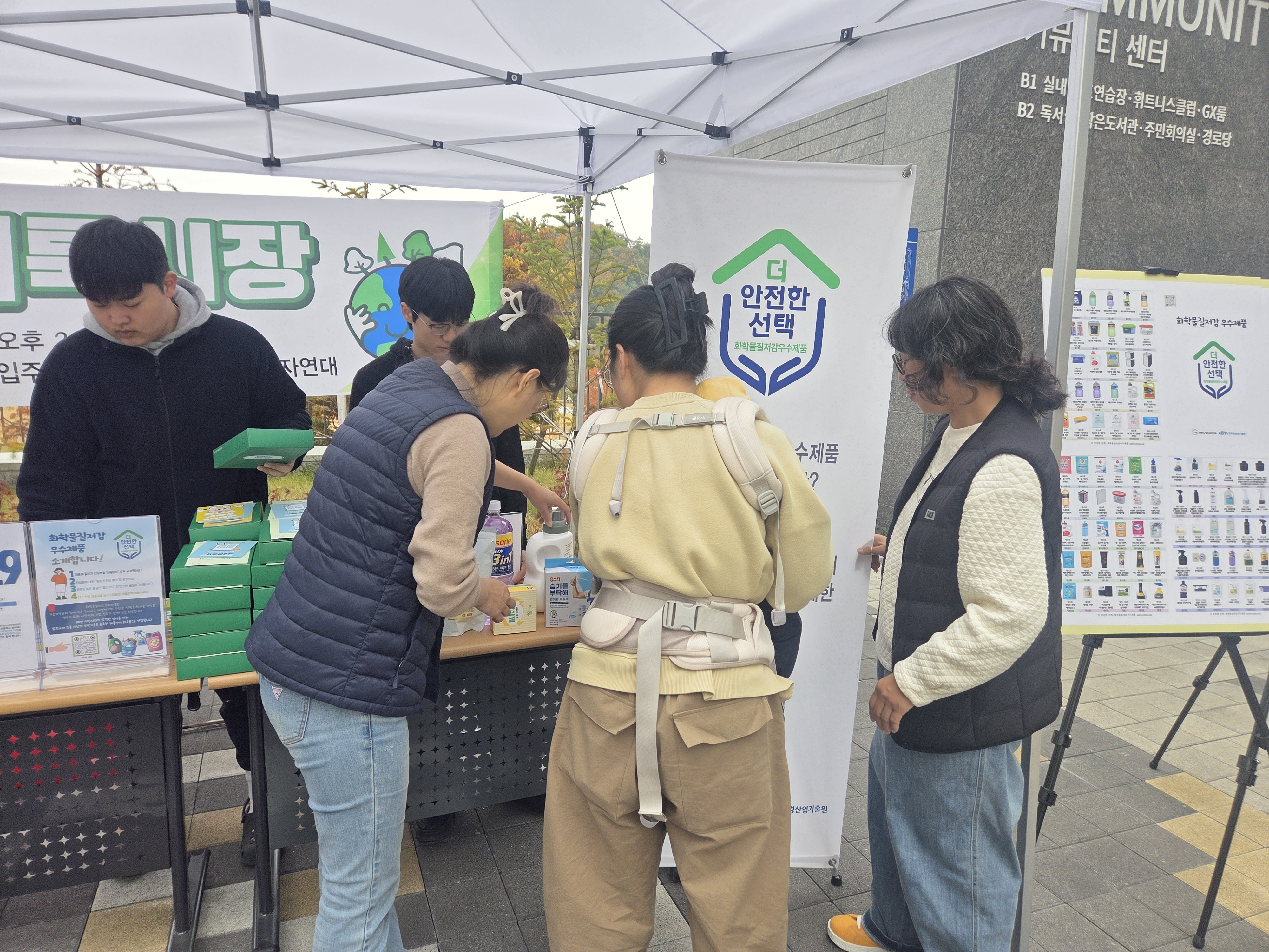 하지만 시민들은 화우품에 대해 잘 모르는 경우가 많아 이를 알리기 위해 11월 8일 삼용호반 아파트에서 화학물질저감우수제품을 홍보하고 제도를 알리는 캠페인을 진행하였습니다.