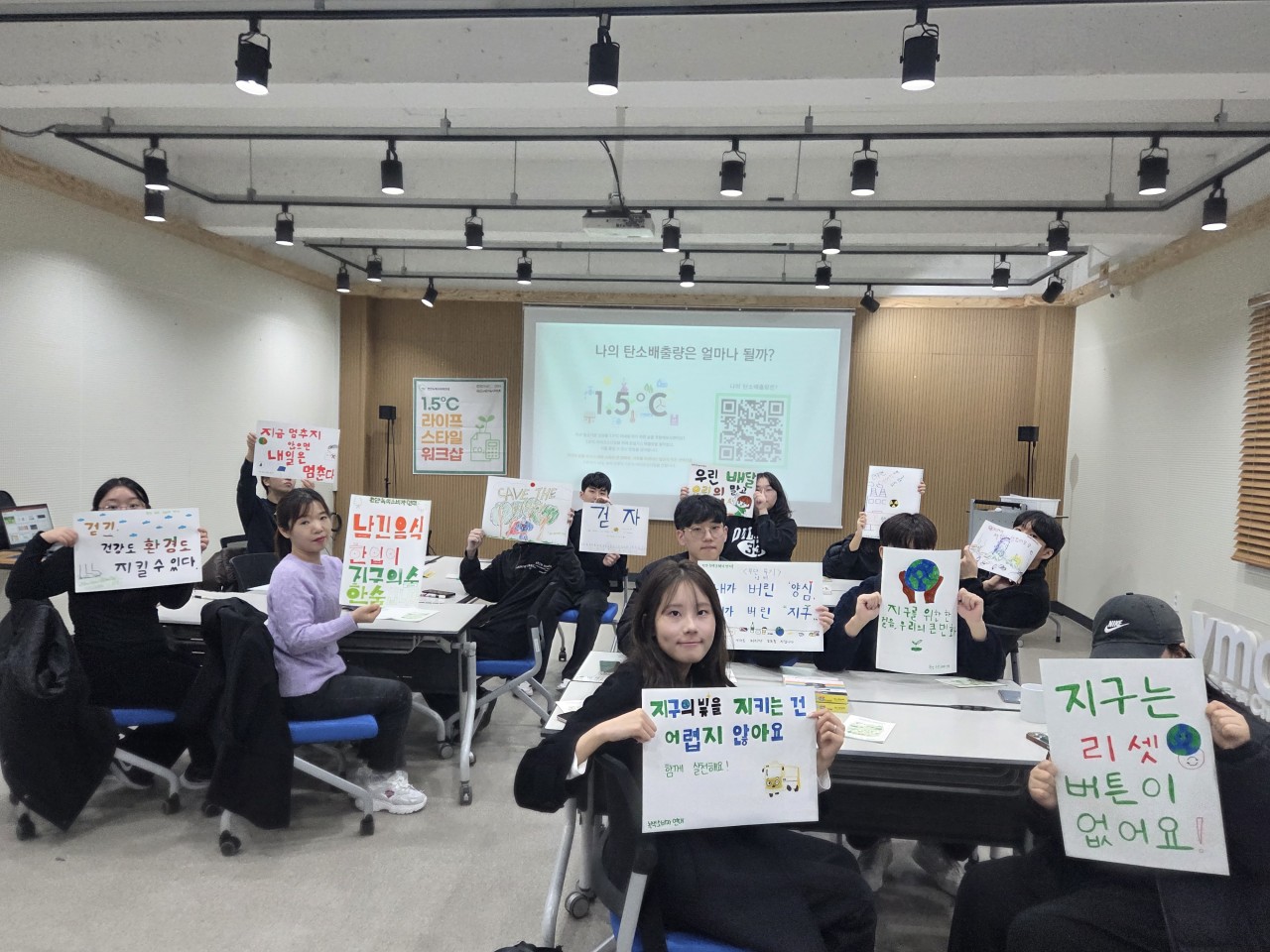 기후위기를 슬기롭게 대처하는 녹색행동 알아보기 "1.5도 라이프스타일 워크숍", 토요일 오전 대학생들과 함께 진행하였습니다.
