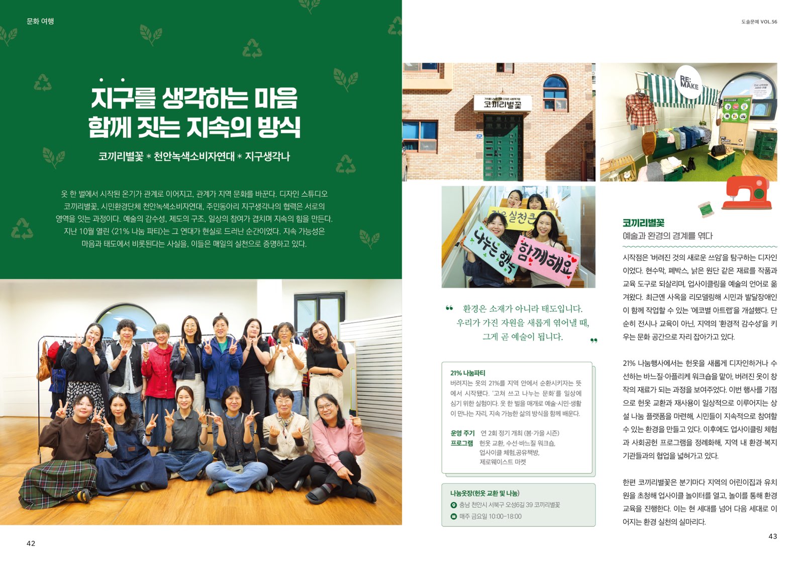 10월 26일에 지역과 협업한 지구와함께놀장 옷 교환파티 내용이 도솔문예에 실렸습니다.