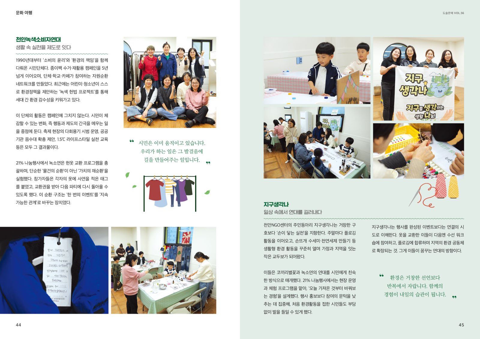 10월 26일에 지역과 협업한 지구와함께놀장 옷 교환파티 내용이 도솔문예에 실렸습니다.