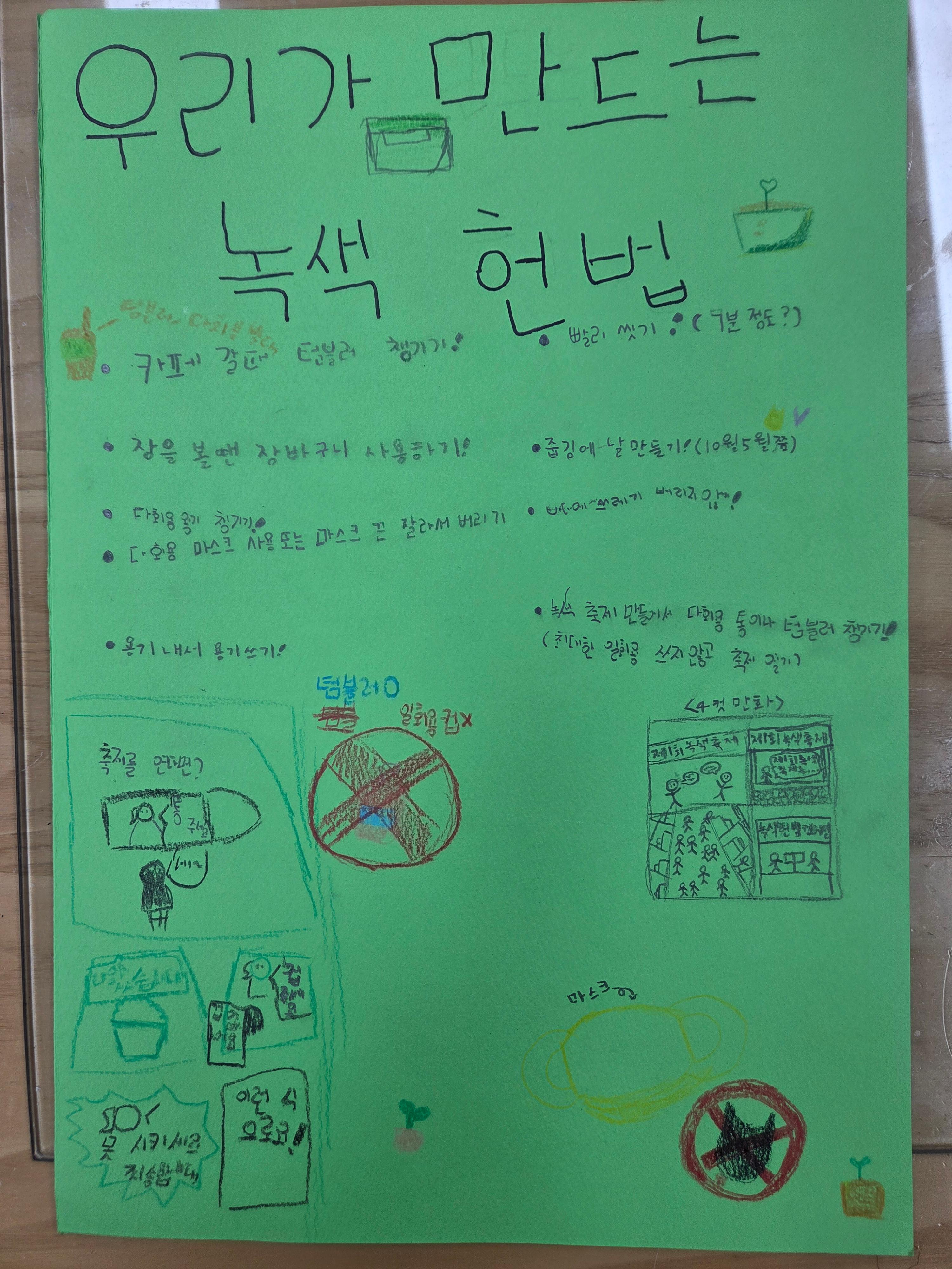 그리고 친구들이 직접 만든 녹색헌법 포스터도 함께 살펴보았습니다.