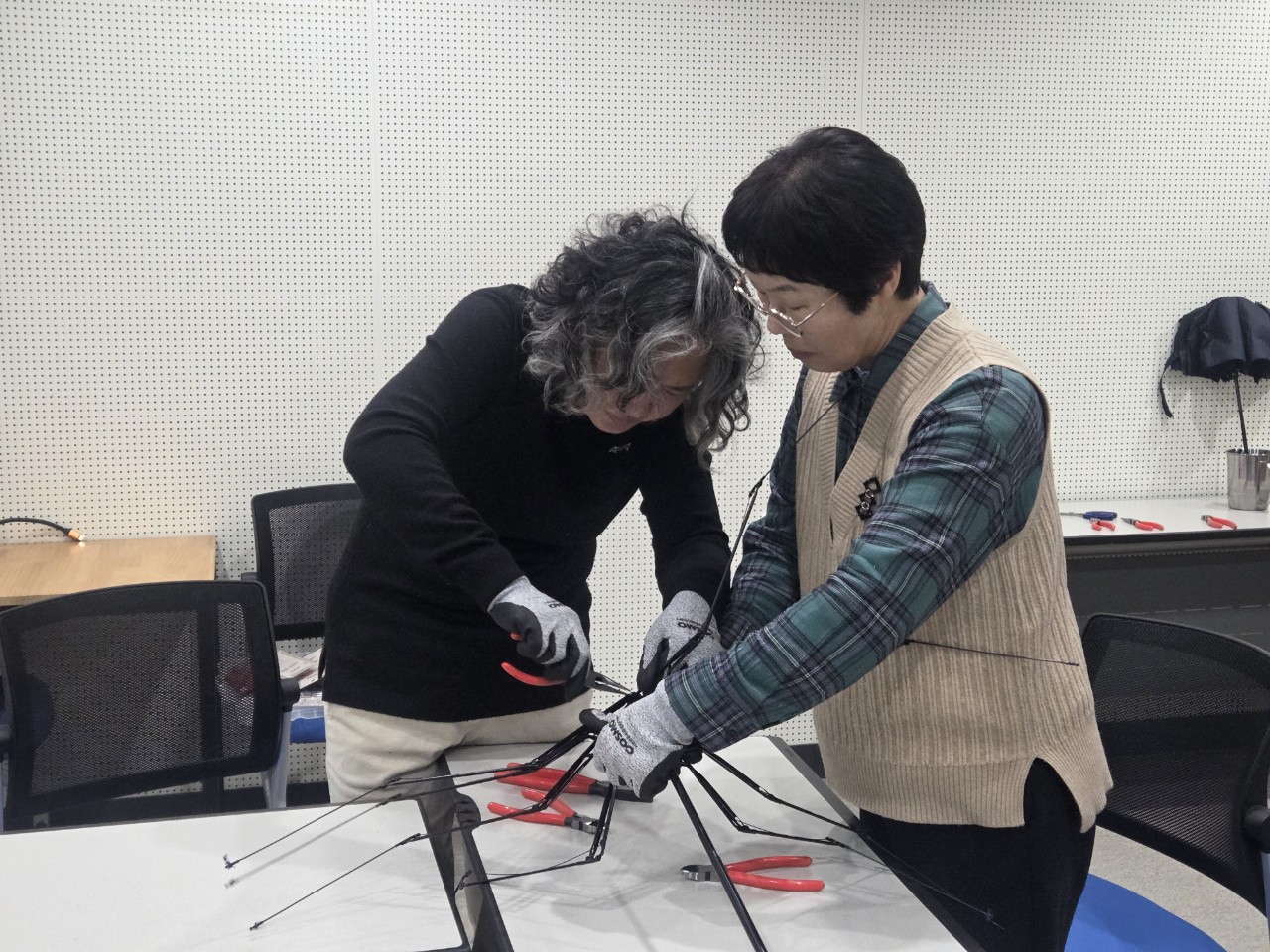 우산 수리 교육을 할 생각을 하면 신나게 하다 보니 어느덧 두시간이 훌쩍!!!