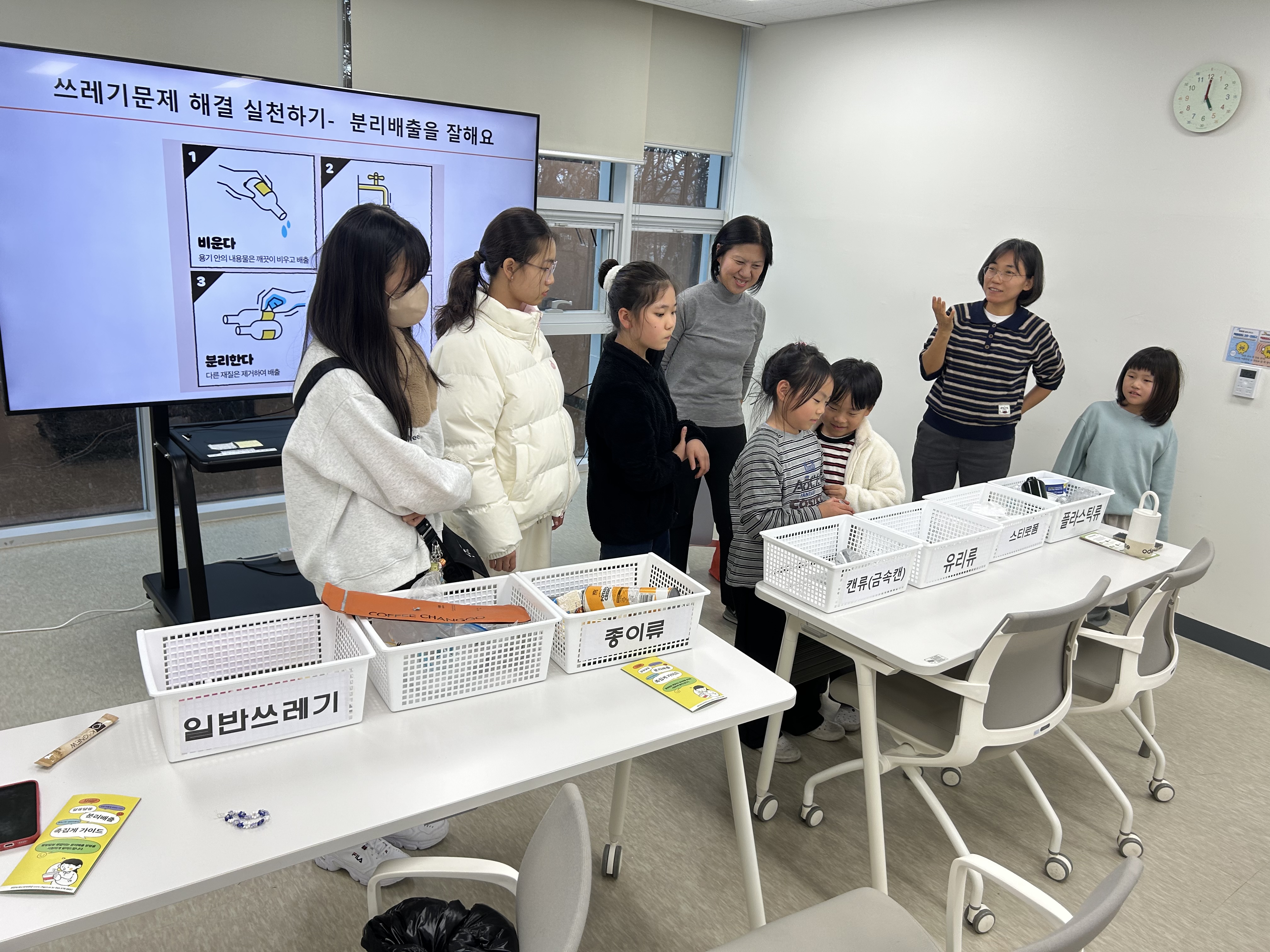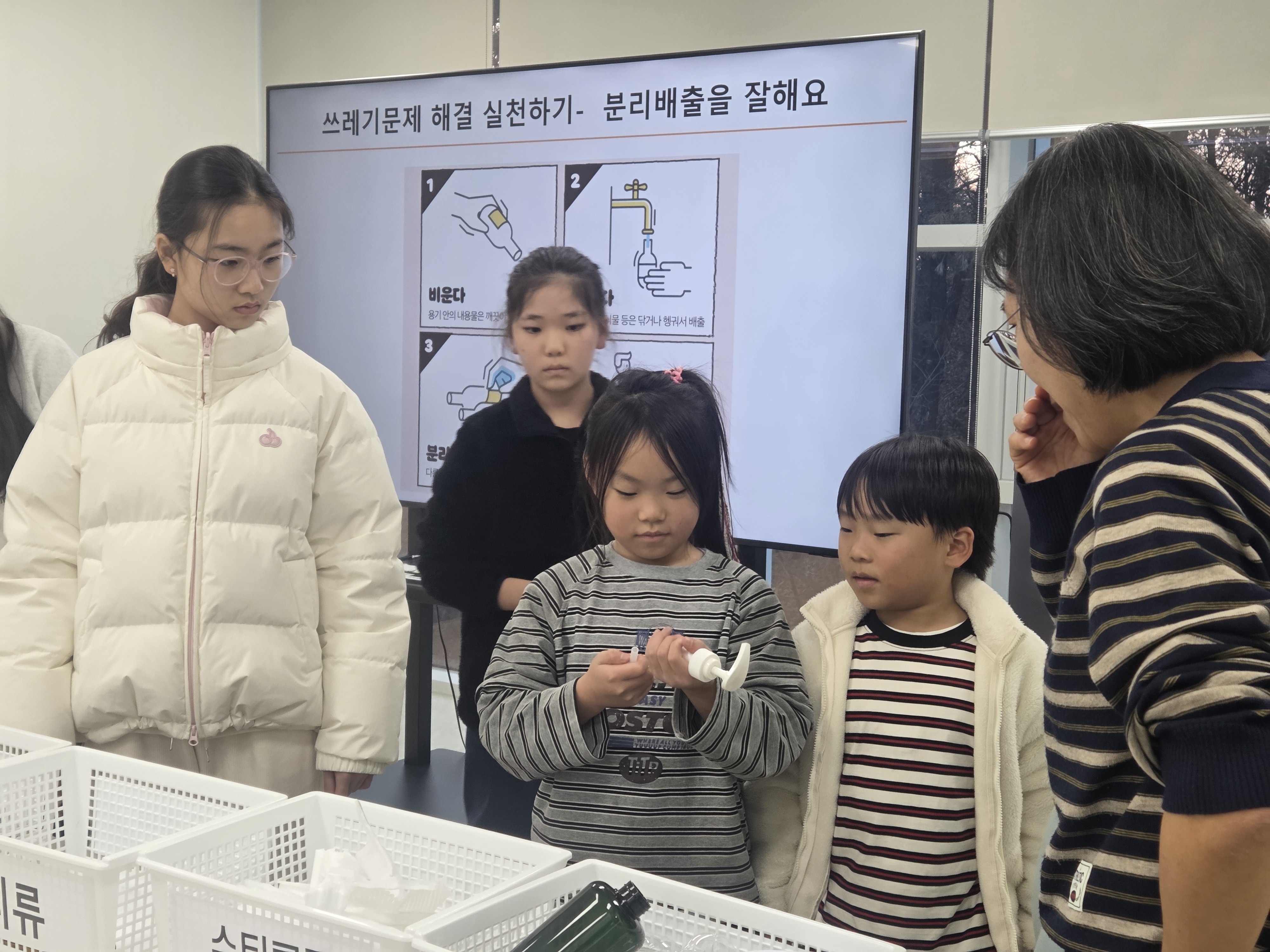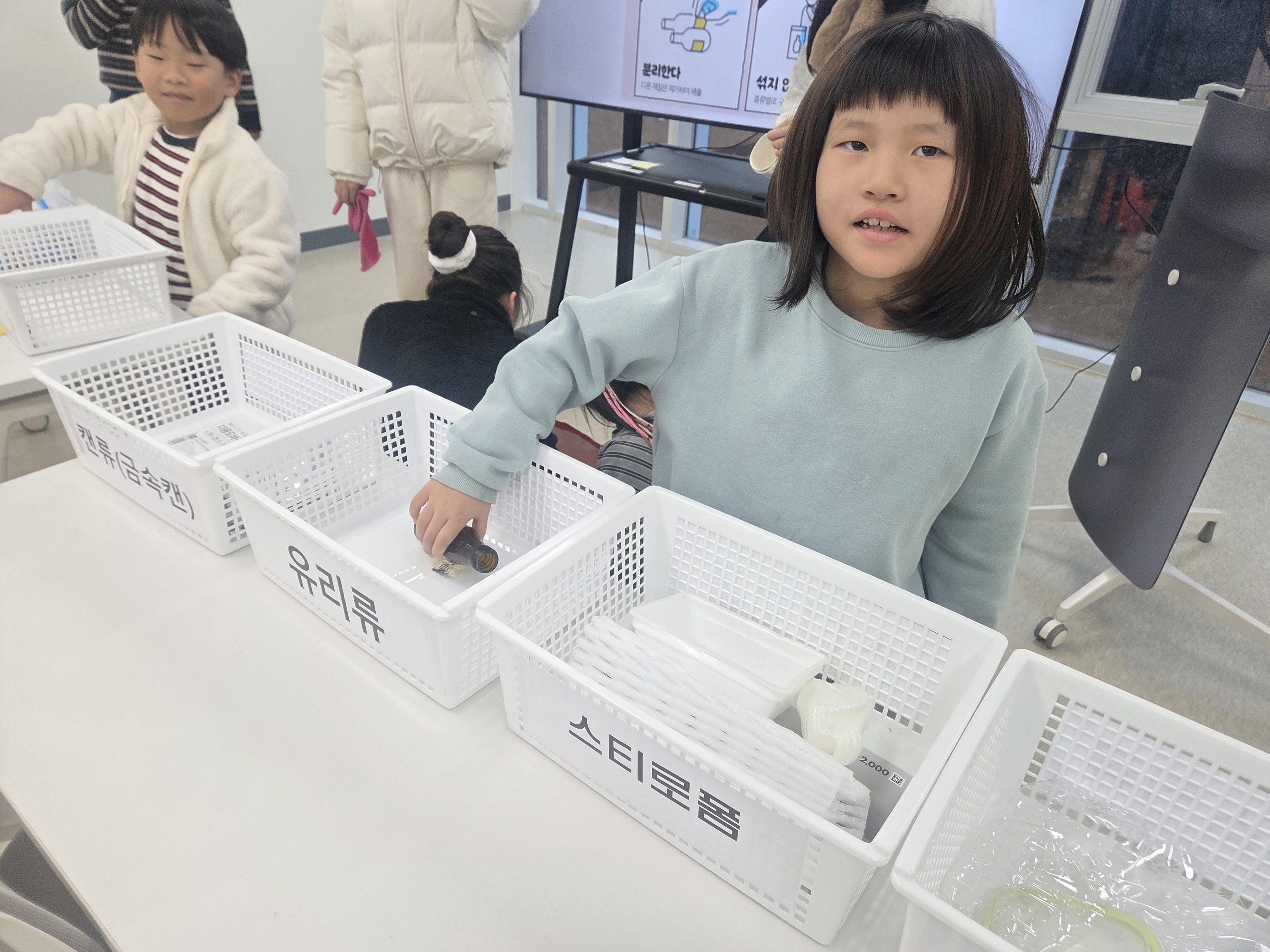 비행분섞 후 아이들과 직접 분리배출 체험도 하고 제대로 분리배출했는지 알아보았습니다.