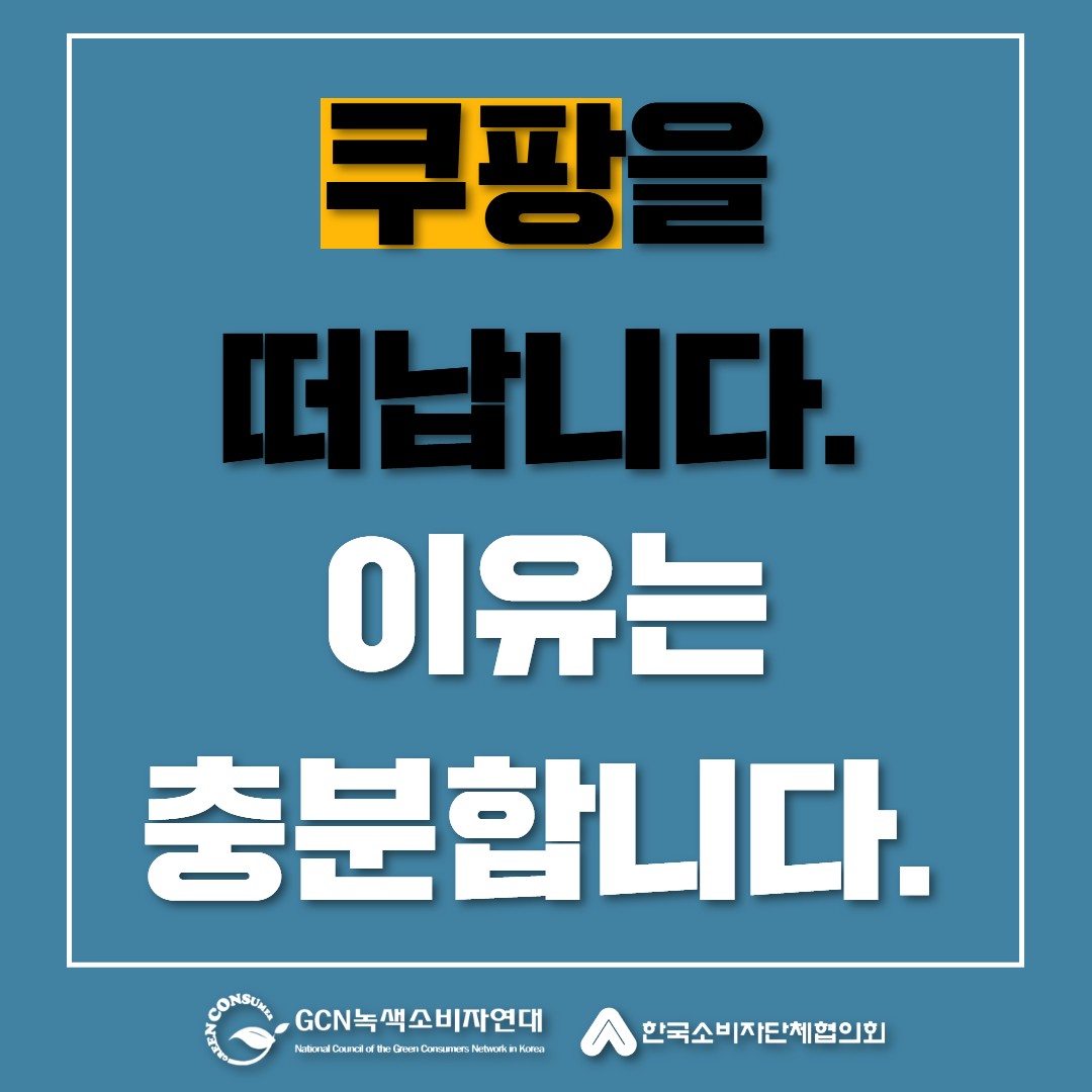 녹색소비자연대는 11개의 소비자단체와 함께 쿠팡 탈퇴운동을 시작합니다. 그리고 해결방안이 마련될 때까지 행동할 겁니다.