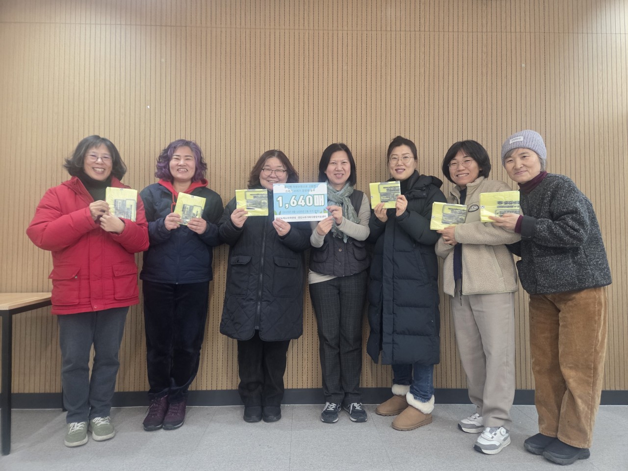 20254-12월까지 모은 종이팩 교환으로 받은 쓰레기 종량제봉투 1,640장을 천안시주거복지종합지원센터에 기부하였습니다.
