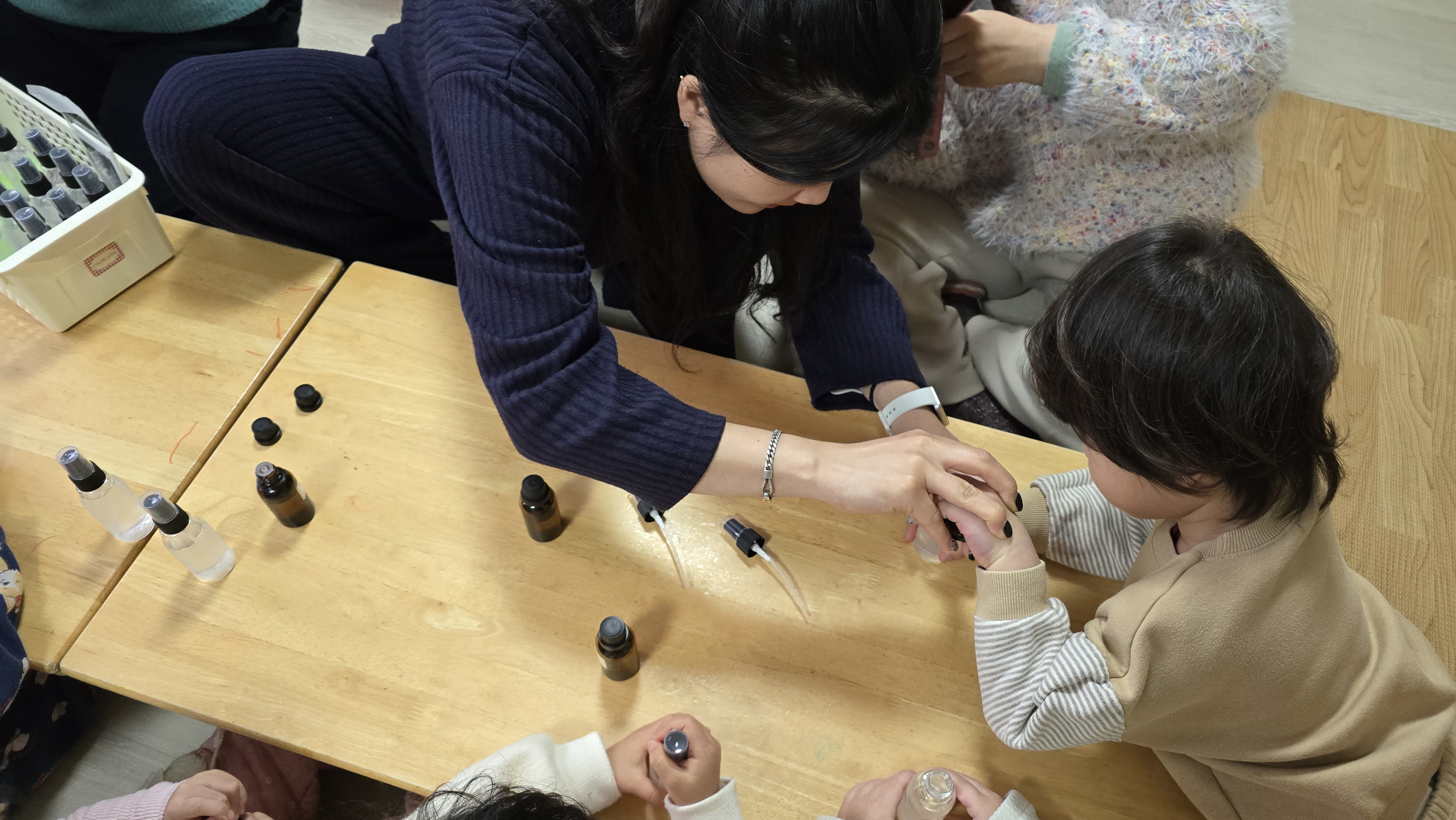 아침저녁으로 기온차가 많이 나서인지 감기에 걸린 친구들이 많은데요, 감기 예방에 좋다는 유칼립투스 에센셜 오일을 활용한 룸스프레이 만들기를 다 함께 만들어 보았습니다.