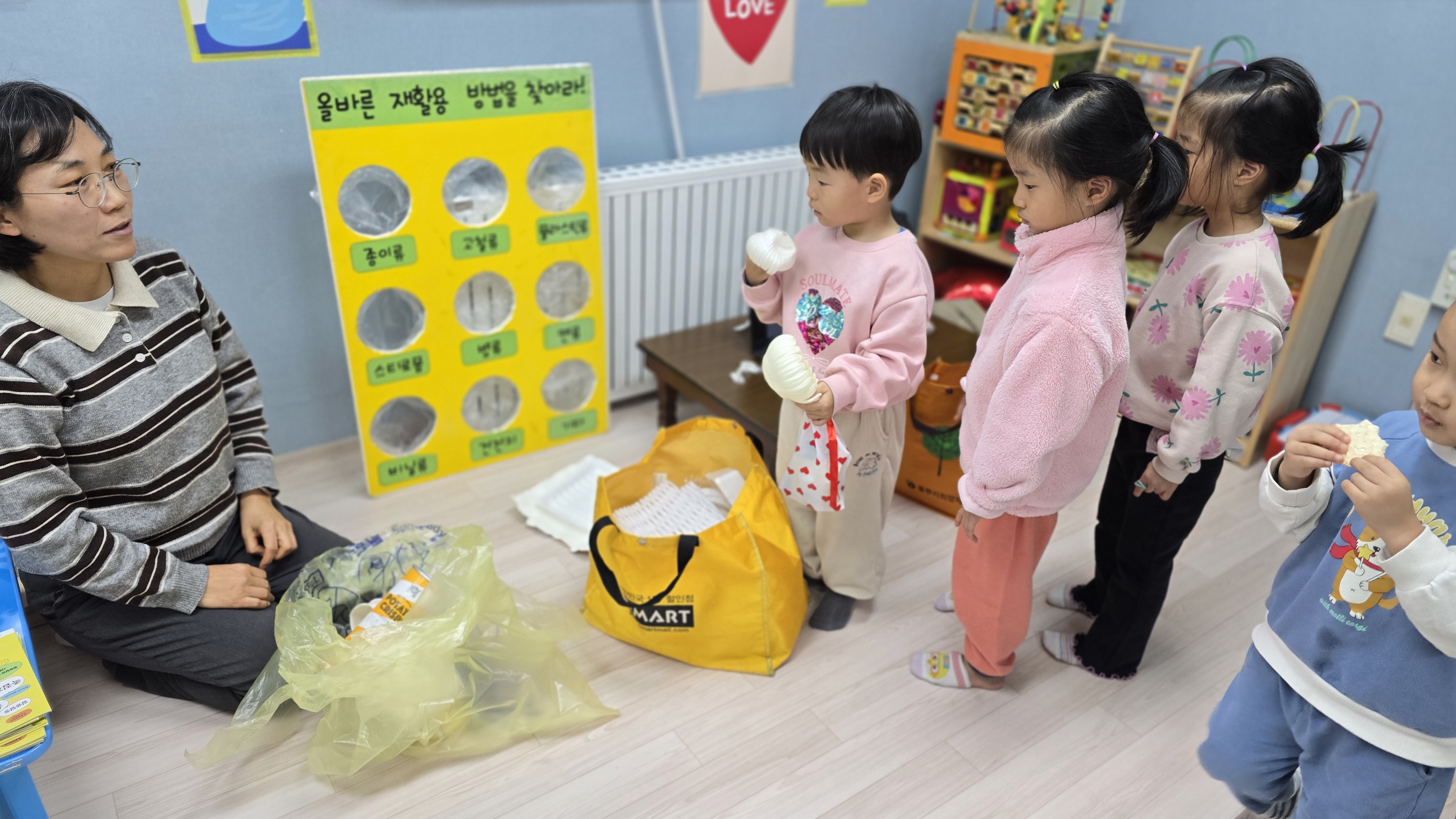 친구들과 엄마가 함께 탄소배출이 적은 밥상을 차려보고 직접 분리배출을 해보는 활동을 통해 나의 생활을 들여다보고 일상에서 기후위기를 늦추는 녹색소비 실천도 직접 해보았습니다.
