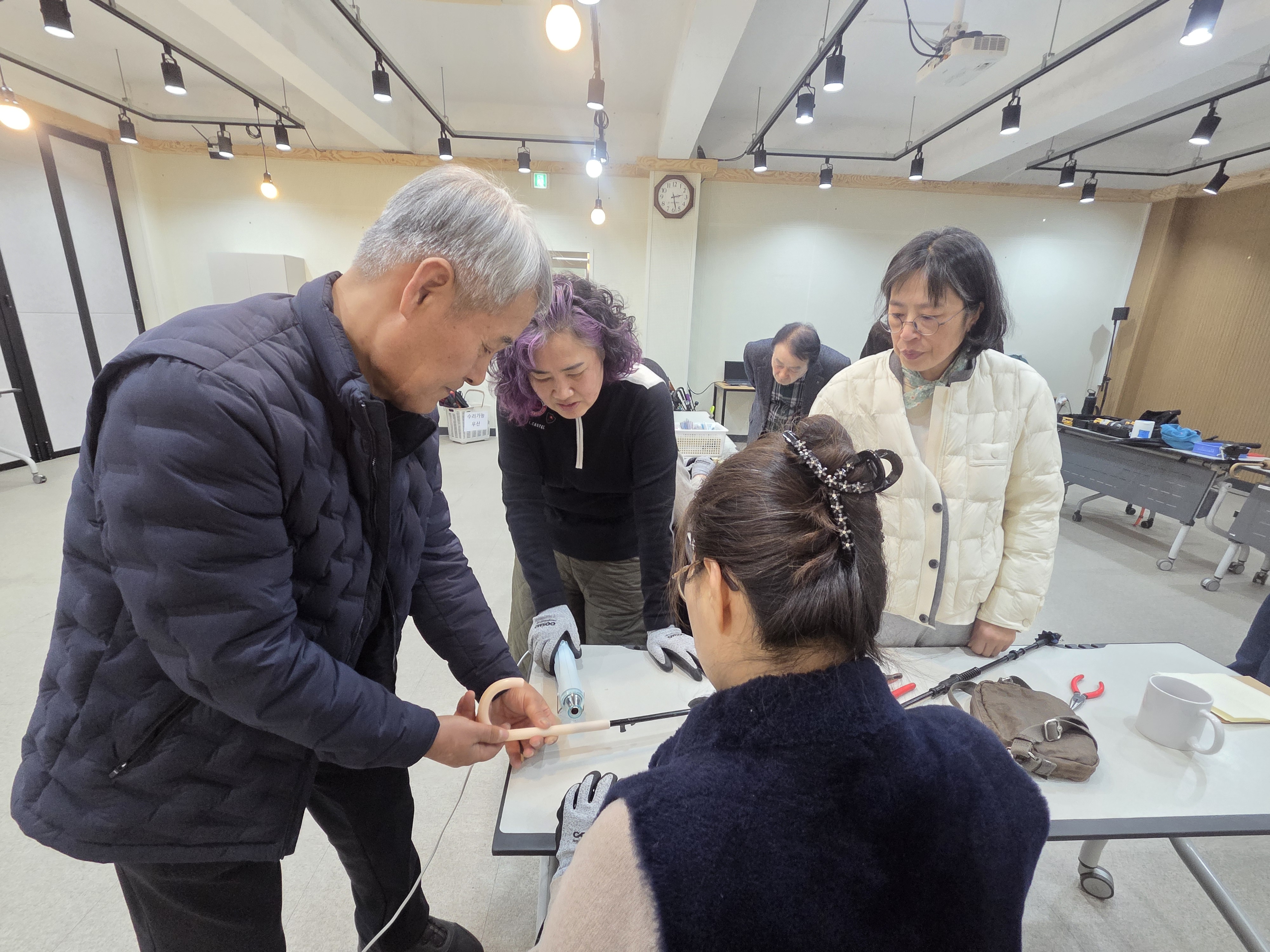 오늘은 특별히 작년 하반기 부터 고장난 우산을 수리하고 싶다고 기다리셨던 시민 두분이 함께 해주셨는데요 우산수리팀의 열정에 감격했는지 한분은 우산수리팀에 들어오셨고 다른 한분은 후원금 5만원과 함께 고장난 우산을 모아주시겠다는 약속을 해주셨답니다. 후원금으로는 3월에 우산수리에 필요한 공구를 구입할 예정입니다.