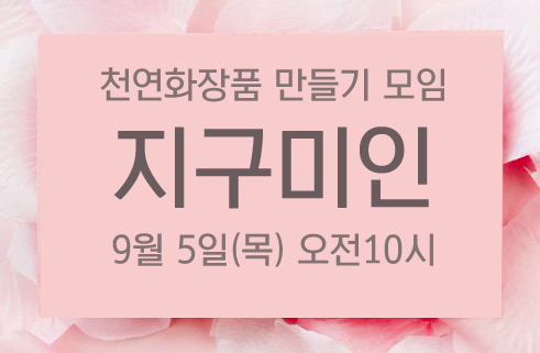 천연화장품 만들기 모임 지구미인 9월 모임은 추석연휴를 앞두고 한 주 앞당겨 진행합니다. 만드실 품목 미리 말씀해주세요!