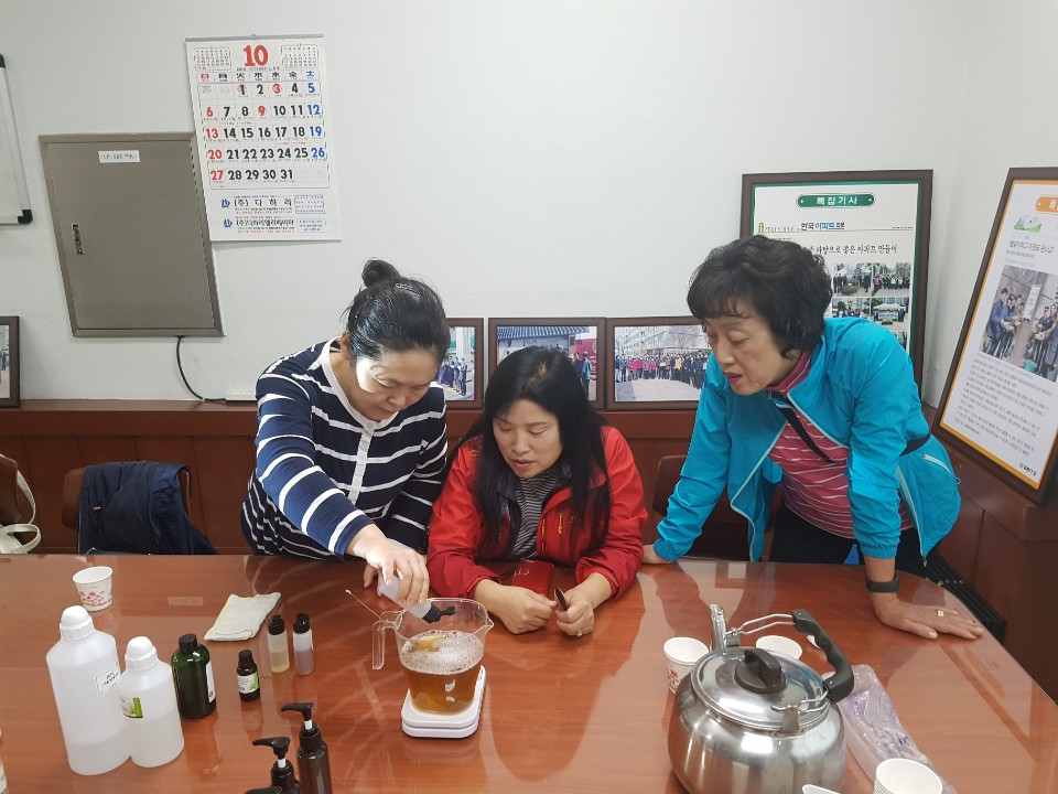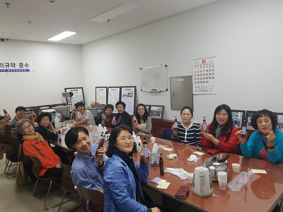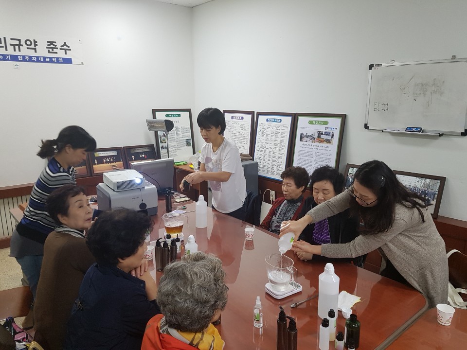 녹소연과 함께 대청호보전운동본부 천안아산네트워크에서 활동하고 있는 불당대동다숲아파트에서 물사랑 교육 진행했습니다. 오늘은 계면활성제를 중심으로 생활용품과 수질오염의 관계에 대해서 알아보고 천연계면활성제를 이용한 바디워시를 만들어보았습니다.