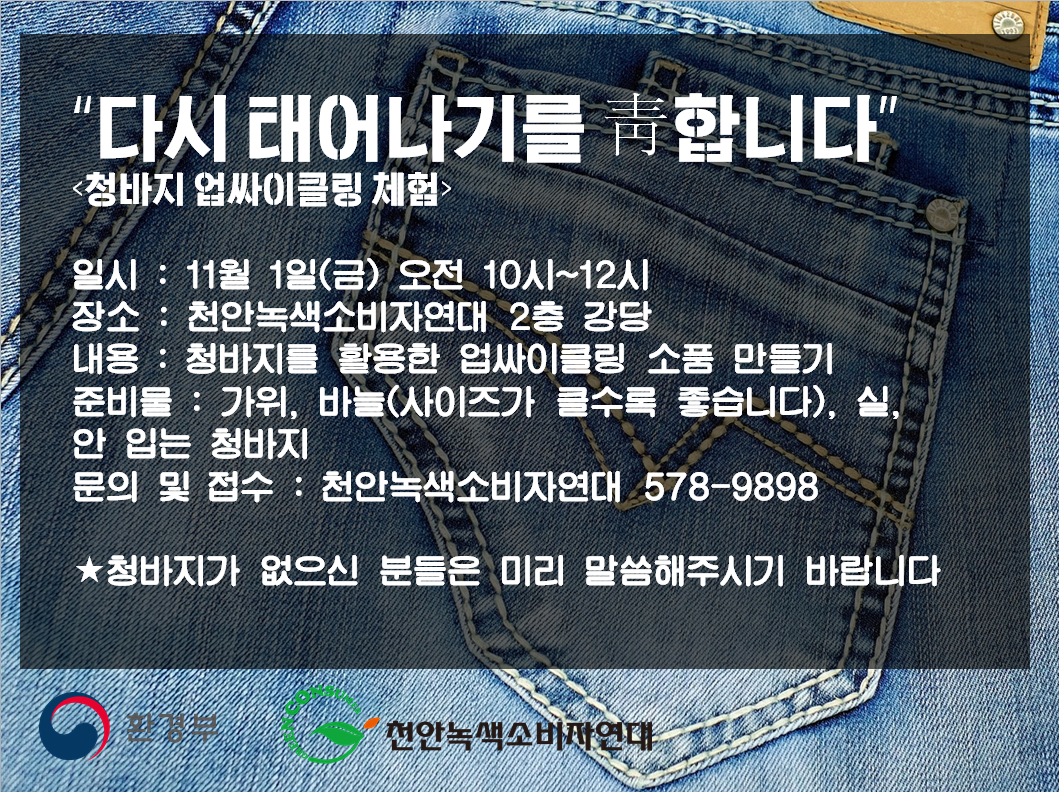 | 청바지 업사이클링 교육 <다시 태어나기를 靑합니다> (0) | 2019.11.01 |