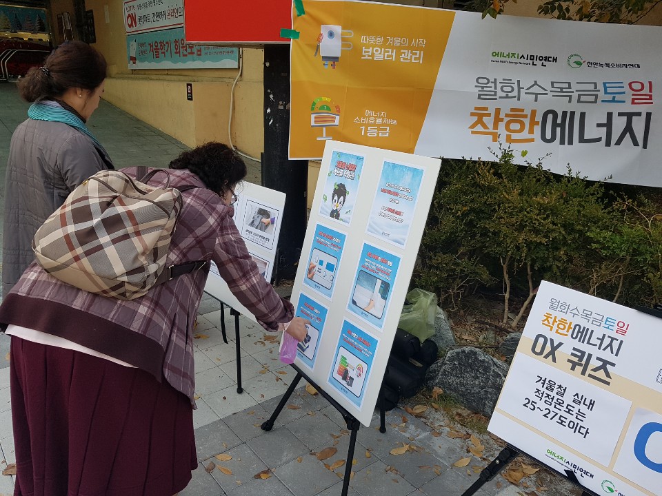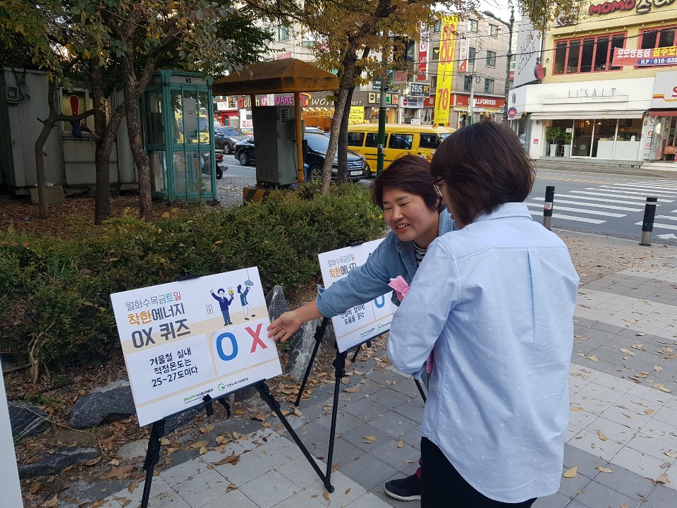 보일러 배관 청소로 난방효율을 높이는 방법을 비롯해 에너지 OX퀴즈를 통해 겨울철 난방에너지 절약 정보를 홍보했습니다. 기념품으로는 보온 물주머니를 나누어드렸습니다.