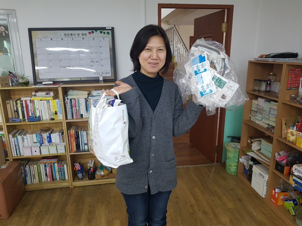 사무국도 회원님들이 가져다주신 종이팩을 모아 성정1동 주민자치센터에서 음식물 쓰레기 봉투로 교환했습니다.