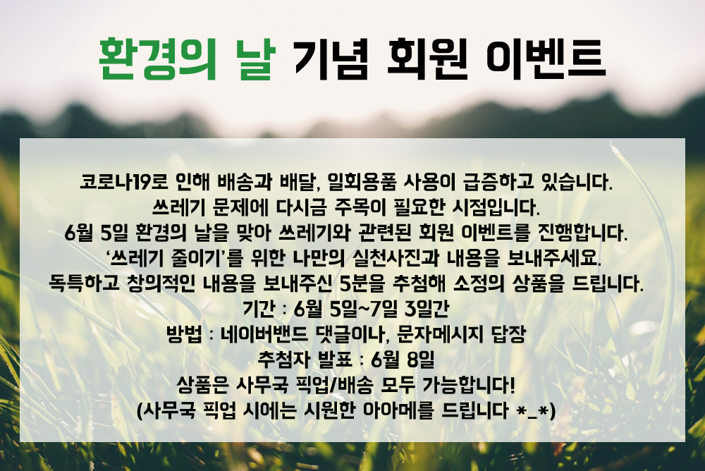 | 환경의 날 기념 회원 이벤트 당첨자 발표 (1) | 2020.06.09 |