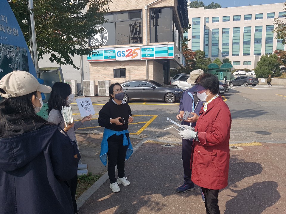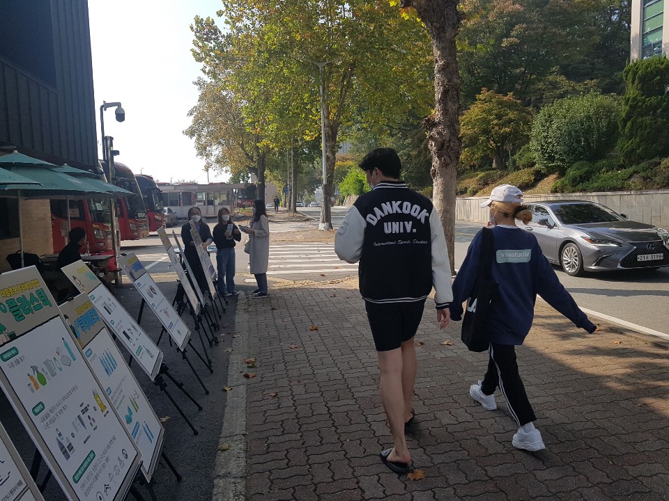 단국대학교 정문에서 대학생들, 시민들을 대상으로 캠페인을 진행했습니다. 미세먼지 상황이 좋지않아 산책하는 시민들이 적은 것이 아쉬웠습니다. 함께 해주신 분들 감사합니다.