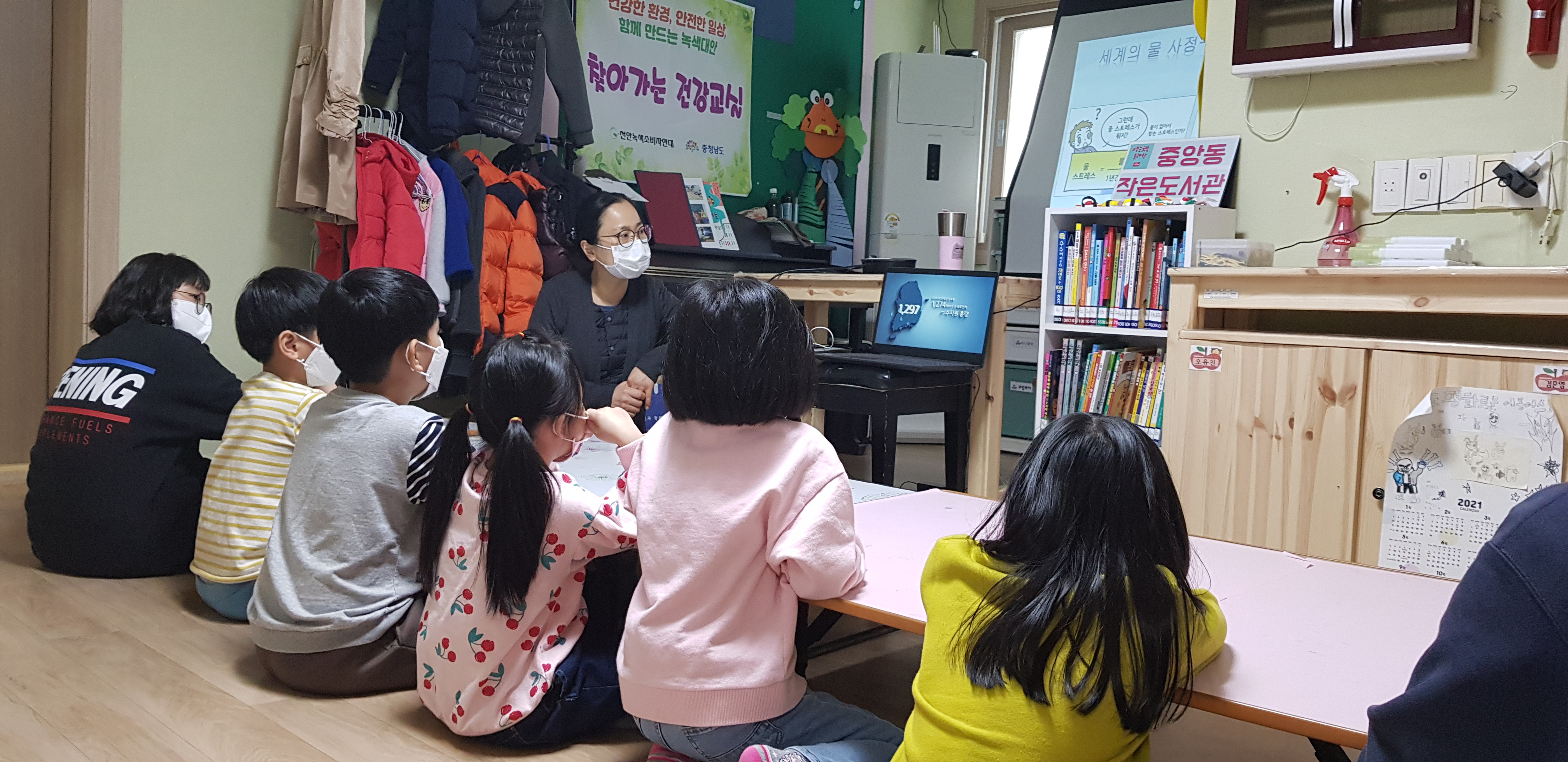 오늘은 물을 중심으로 이야기를 나누어봤습니다. 앞으로도 센터 친구들과 함께 em흙공 만들기 등 다양한 수질보전 활동을 이어갈 예정입니다.