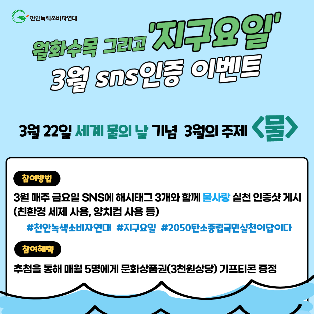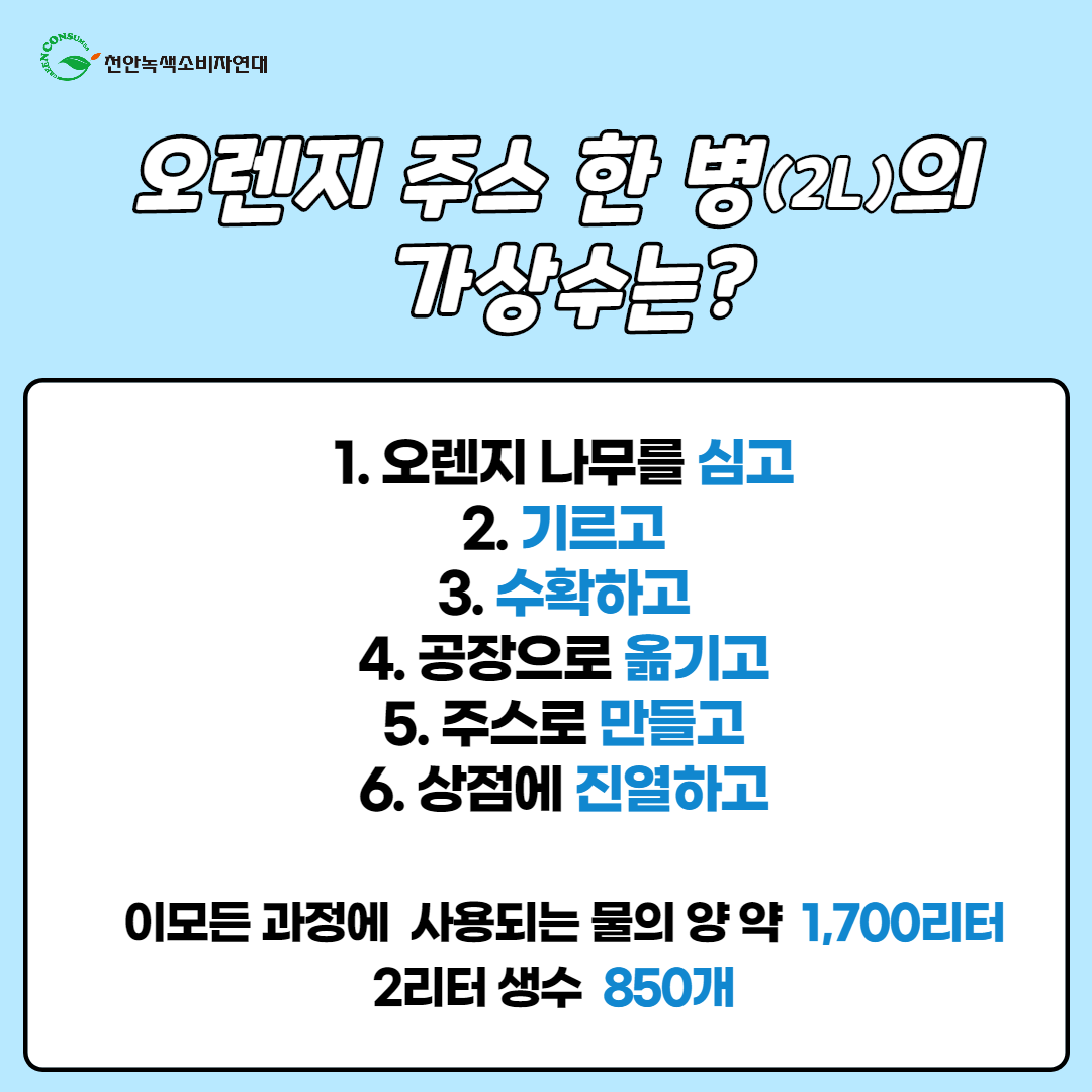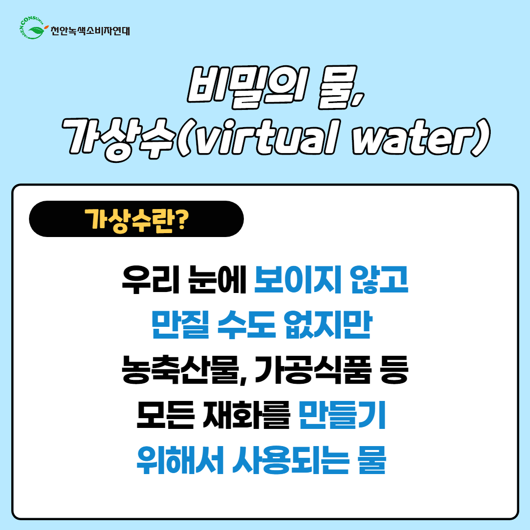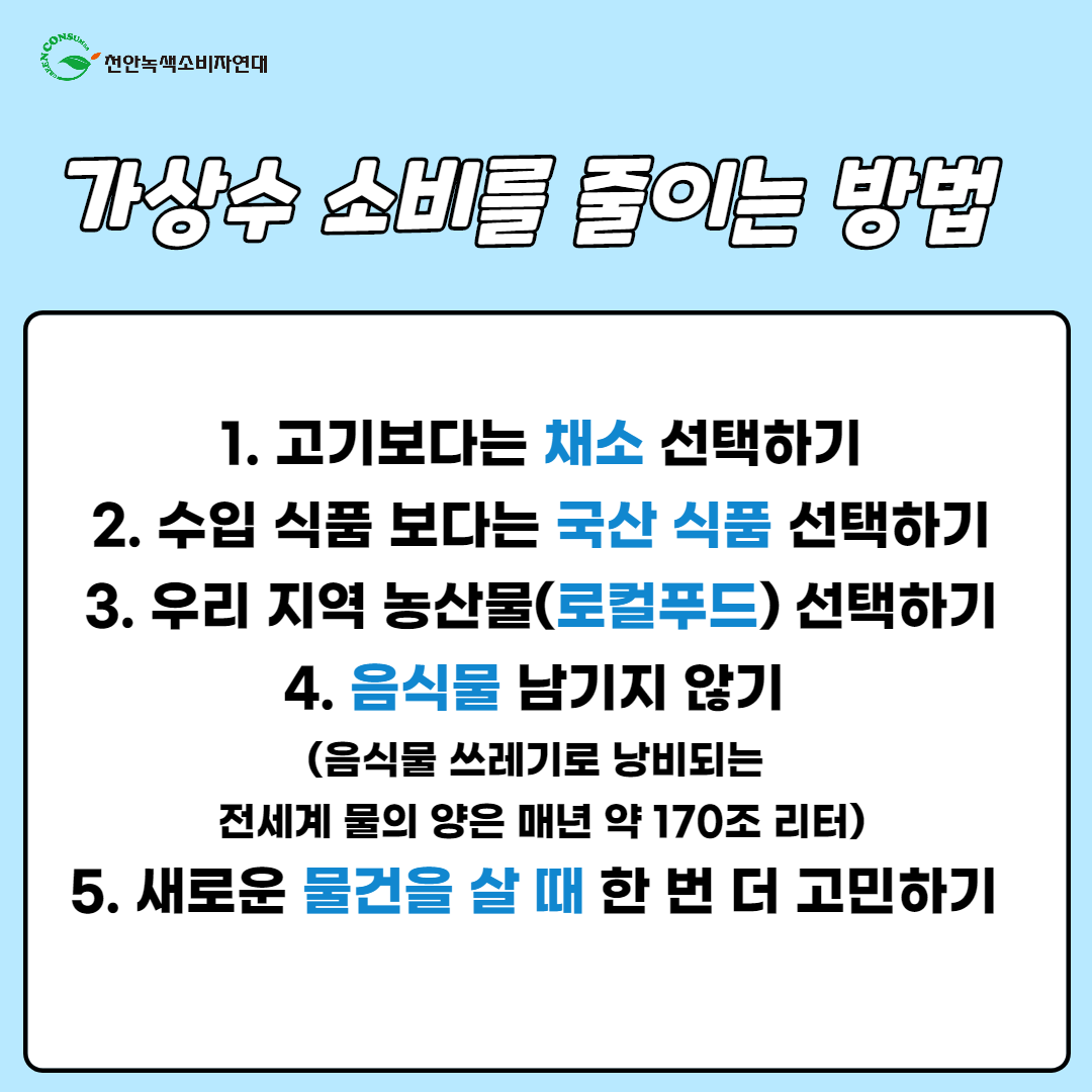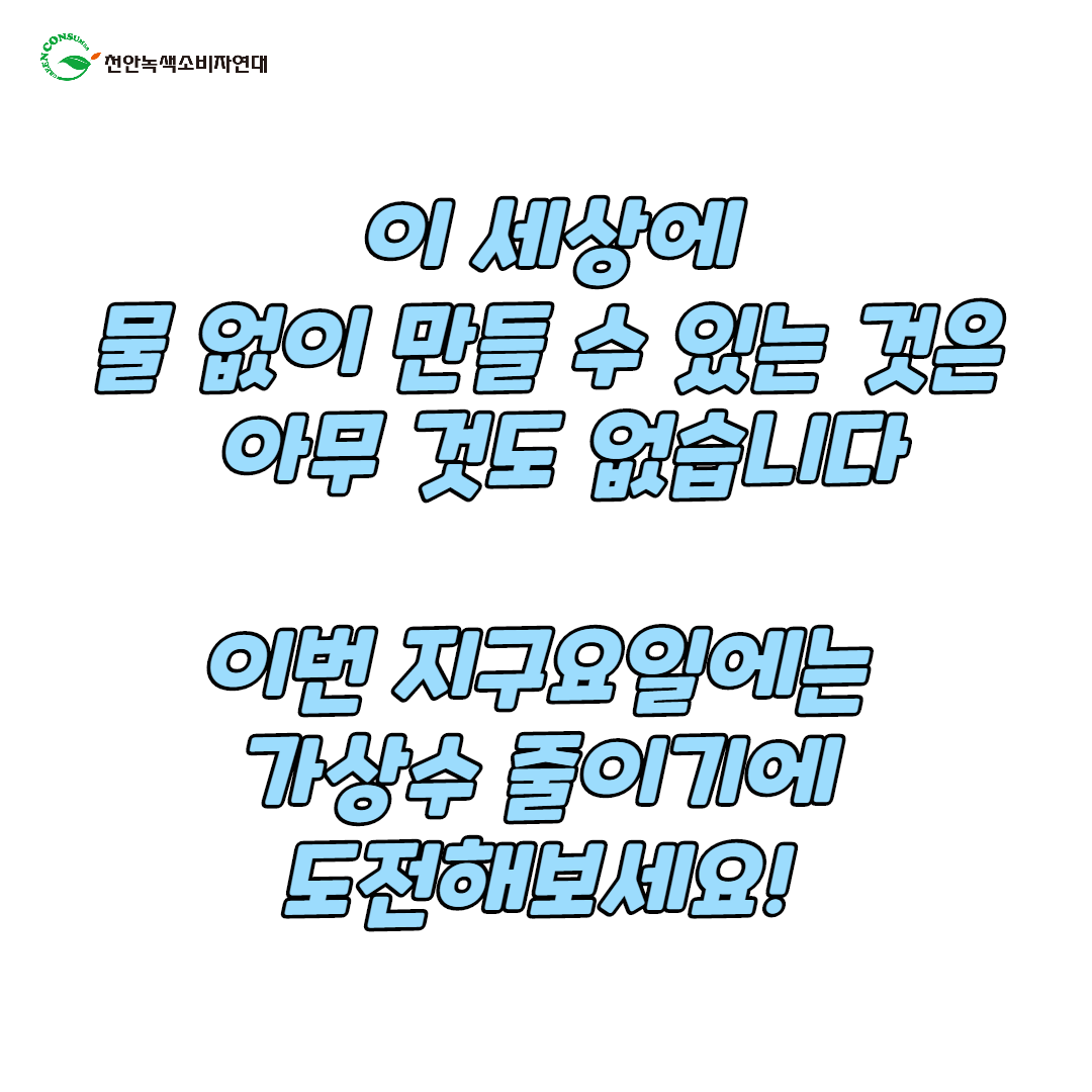 이번 지구요일에는 가상수 줄이기에 도전해보세요!