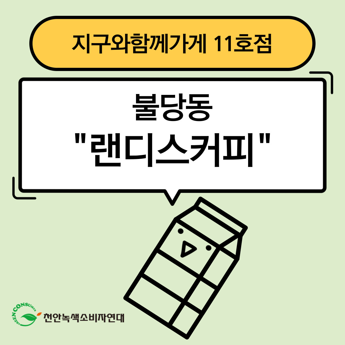<지구와함께가게> 11호점은 불당동 <랜디스커피>(인스타그램 계정 @randyscoffe)입니다.