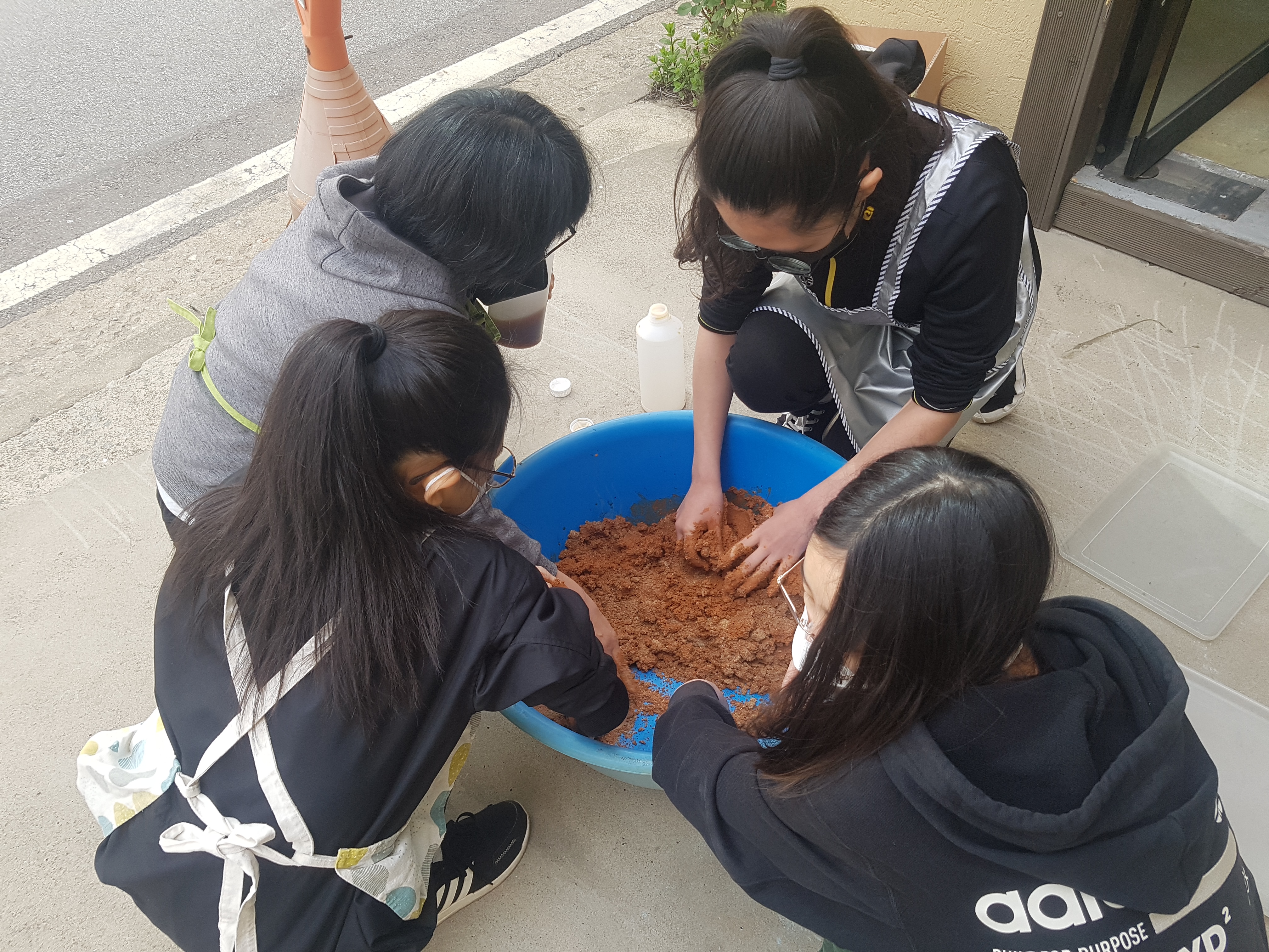 청소년 EM흙공 만들기 교육 진행했습니다. 어린이들과 만들었던 때와는 크기가 또 다르죠? 오늘 만든 흙공은 곰팡이가 핀 후 5월 중순에 하천에 던져줄 계획입니다.