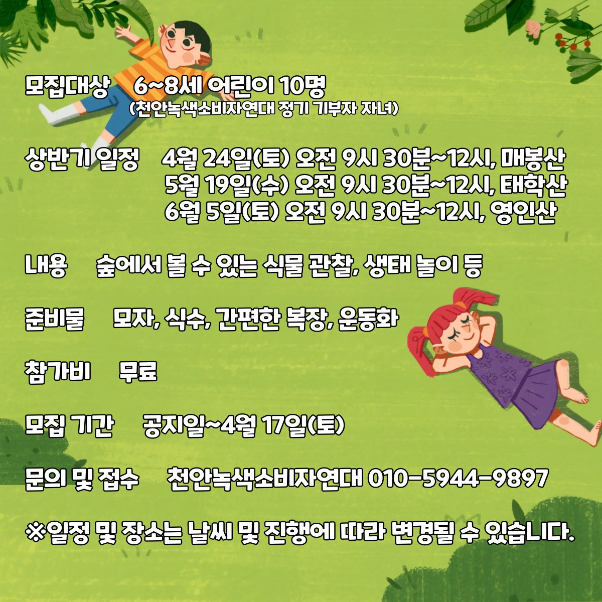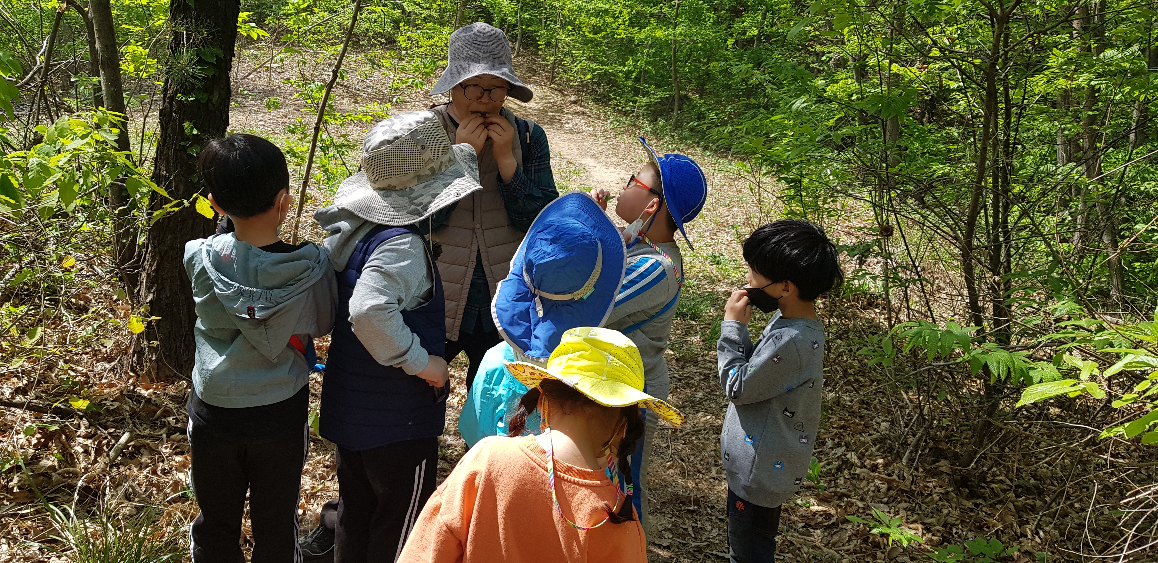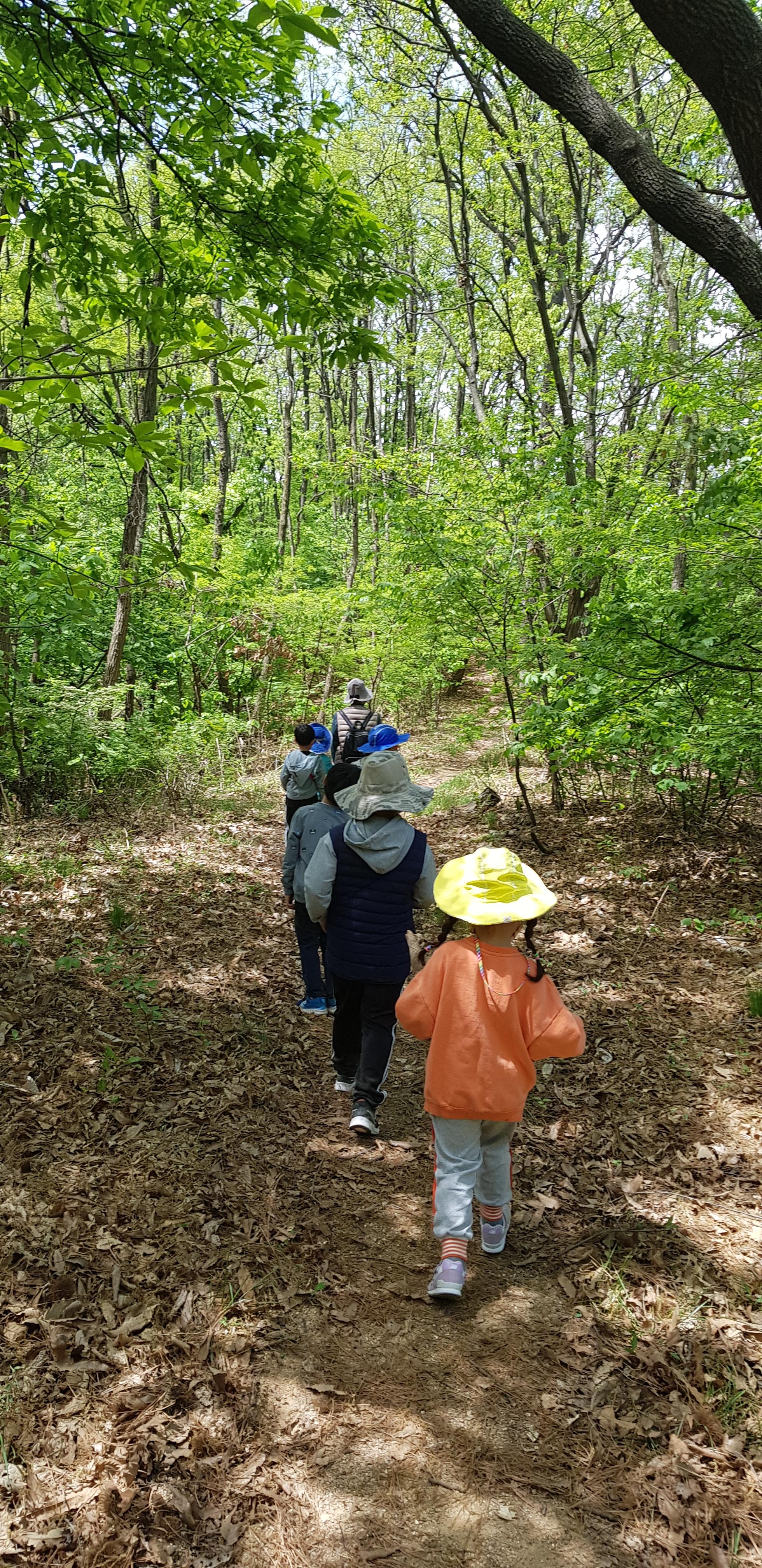 소나무와 분홍공주가 함께 하는 어린이 숲 체험 프로그램 <초록은 동색> 첫 번째 시간 함께 했습니다. 확실히 아이들이 있으니 숲이 더 파랗게 빛나네요.