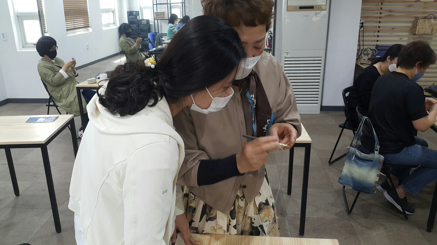 봄지락 꼼지락 2강, 오늘은 삼베실로 수세미를 함께 떴습니다. 사진만 보면 이미 타샤 튜더들이시지만 수세미로 가는 길은 생각보다 험난했다는 사실...!
