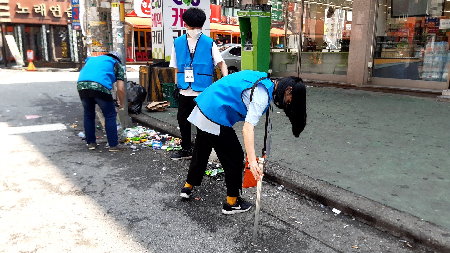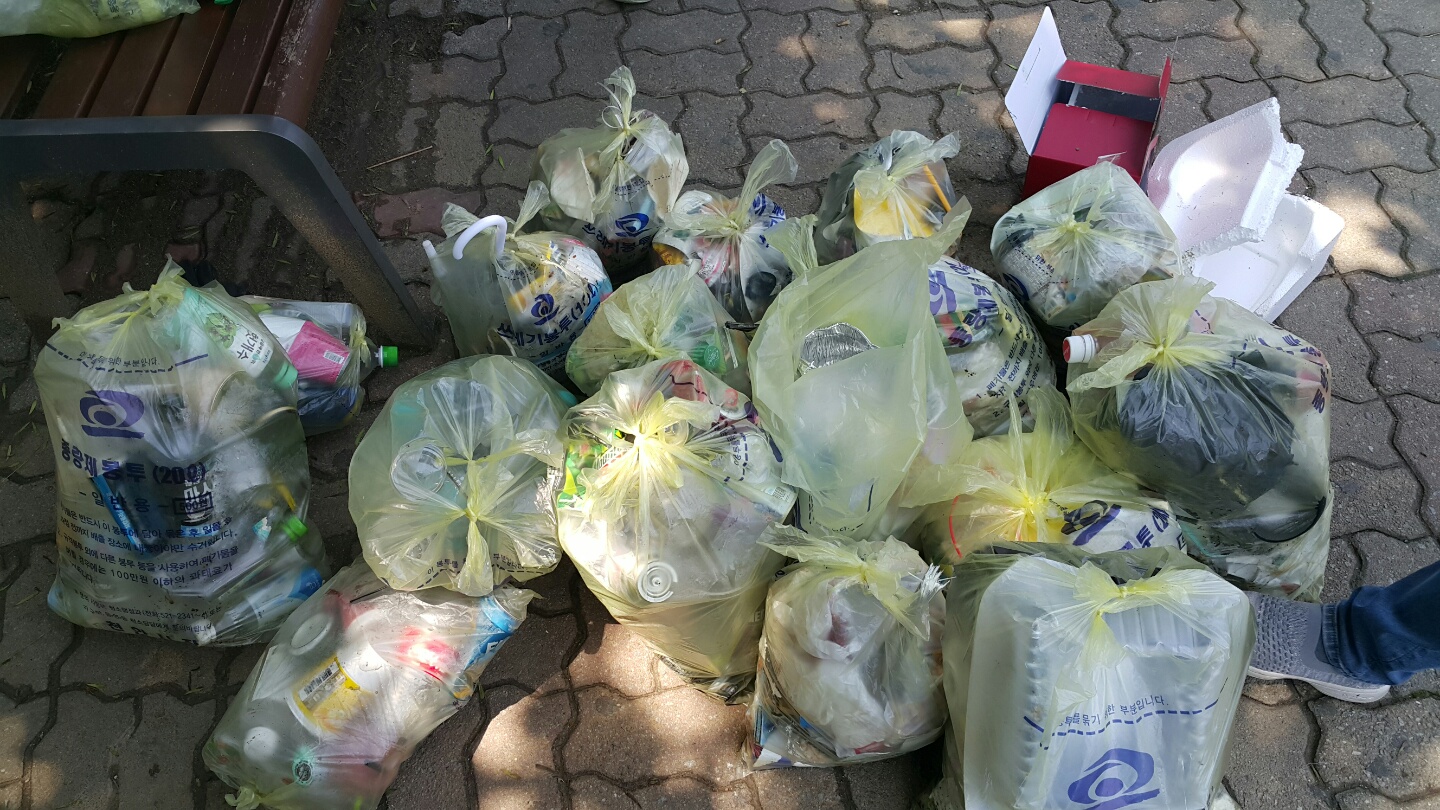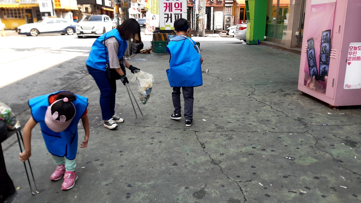 오늘은 두정도 먹자골목에서 대회를 진행했습니다. 번화가 불금의 흔적이 남아있어 쓰레기양이 많았습니다. 행인 한 분이 어른들이 버린 쓰레기를 아이가 줍는 걸 보고 마음이 아프다며 힘내시라는 말씀과 함께 참가자 모두에게 음료수를 사주고 가셨습니다.