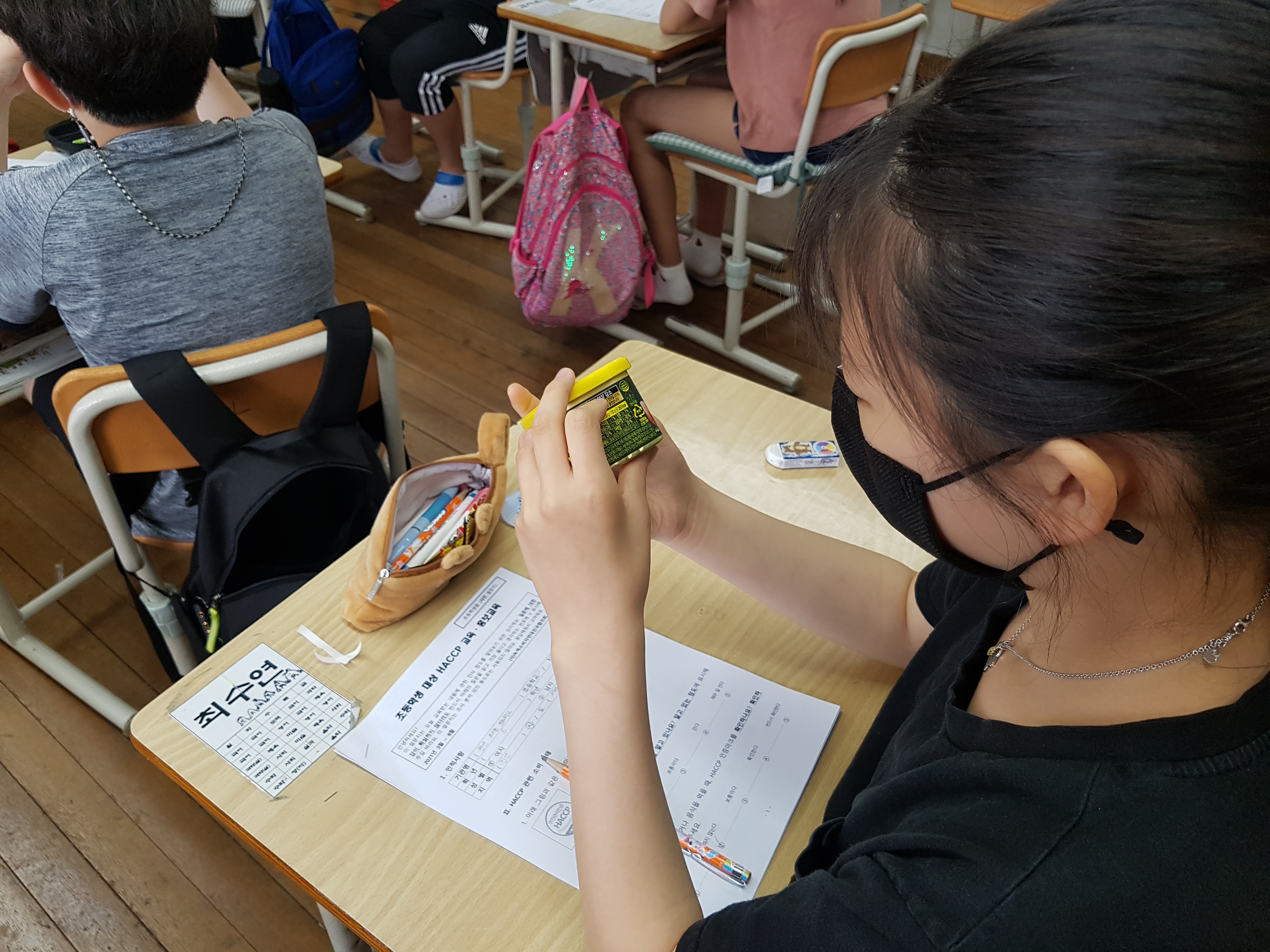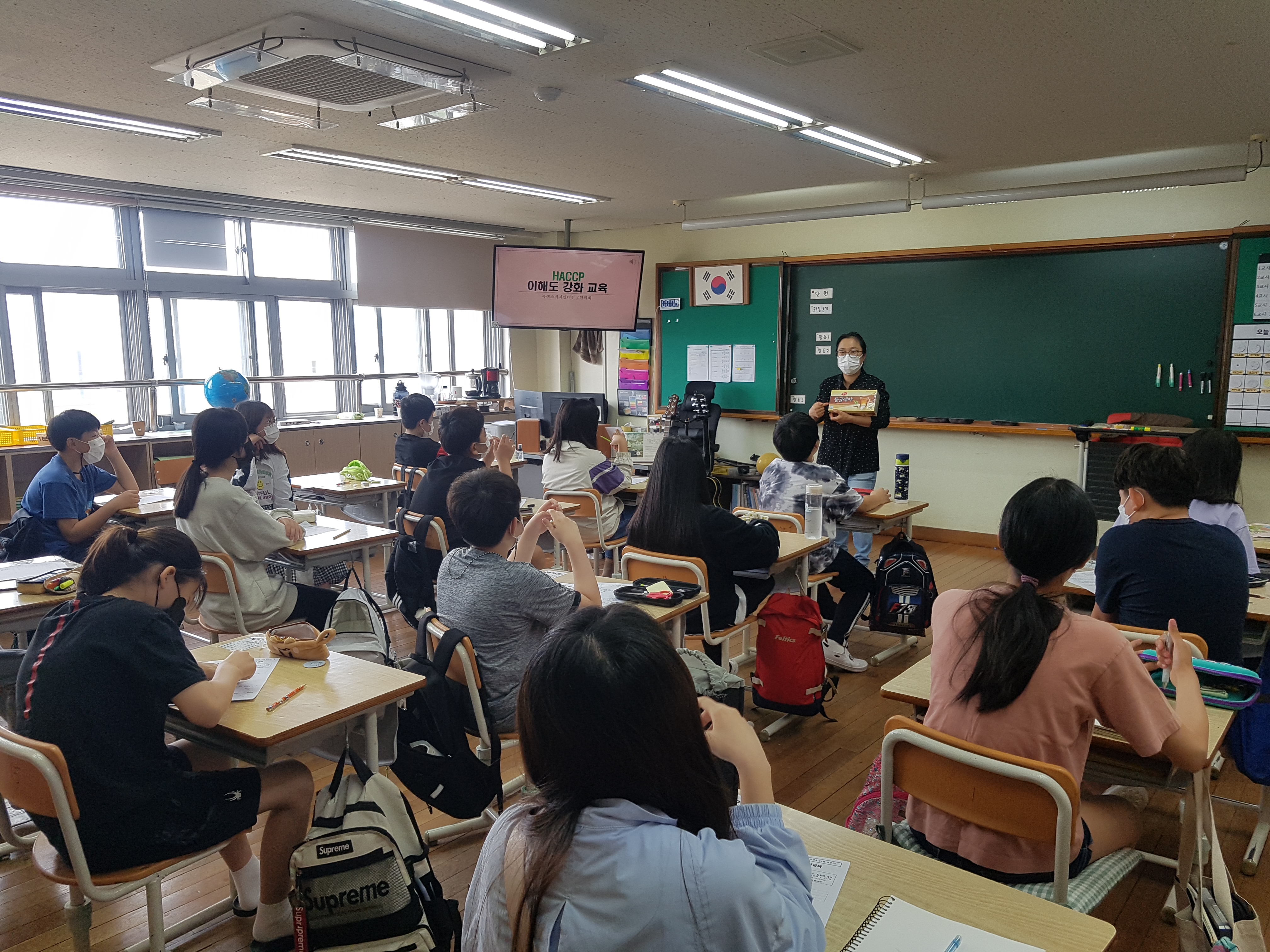 와촌초등학교 HACCP(해썹) 교육 2차시 진행했습니다. 오늘은 해썹 마크에 대해서 중점적으로 알아보았는데요, 다른 인증 마크들과 달리 해썹 인증 마크는 제품 및 업소의 특성과 포장 재질 또는 디자인에 적합하게 다양한 색상과 크기를 적용하여 사용할 수 있습니다.